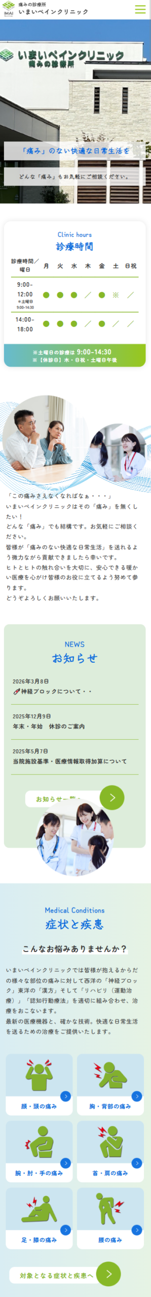 山梨県甲府市にある【いまいペインクリニック】様のホームページを制作させていただきました。