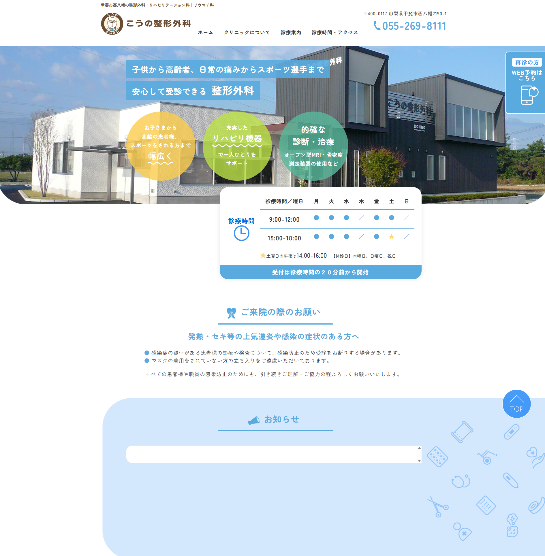 山梨県甲斐市にある整形外科【こうの整形外科様】のホームページを制作させていただきました。