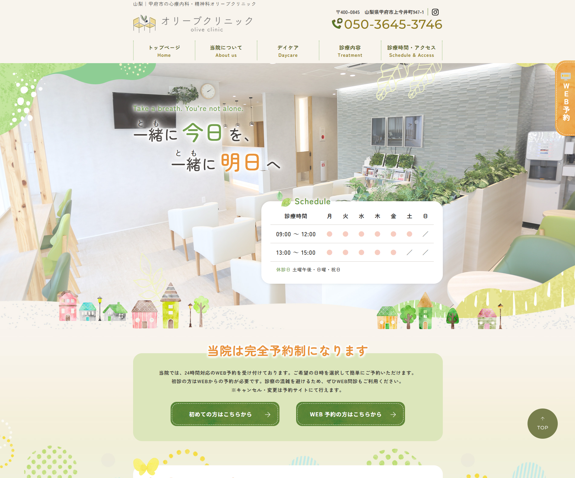 山梨県甲府市にある心療内科・精神科【オリーブクリニック様】のホームページを制作させていただきました。