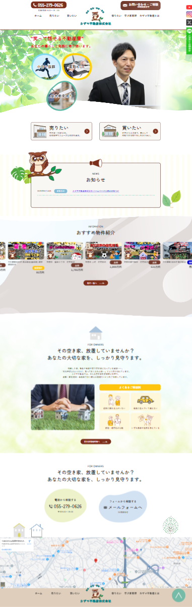 山梨県南甲斐市にある不動産売買・買取を行う【カザマ不動産】様のホームページを制作しました。