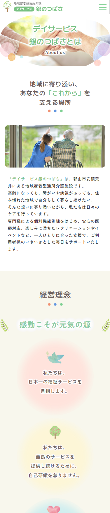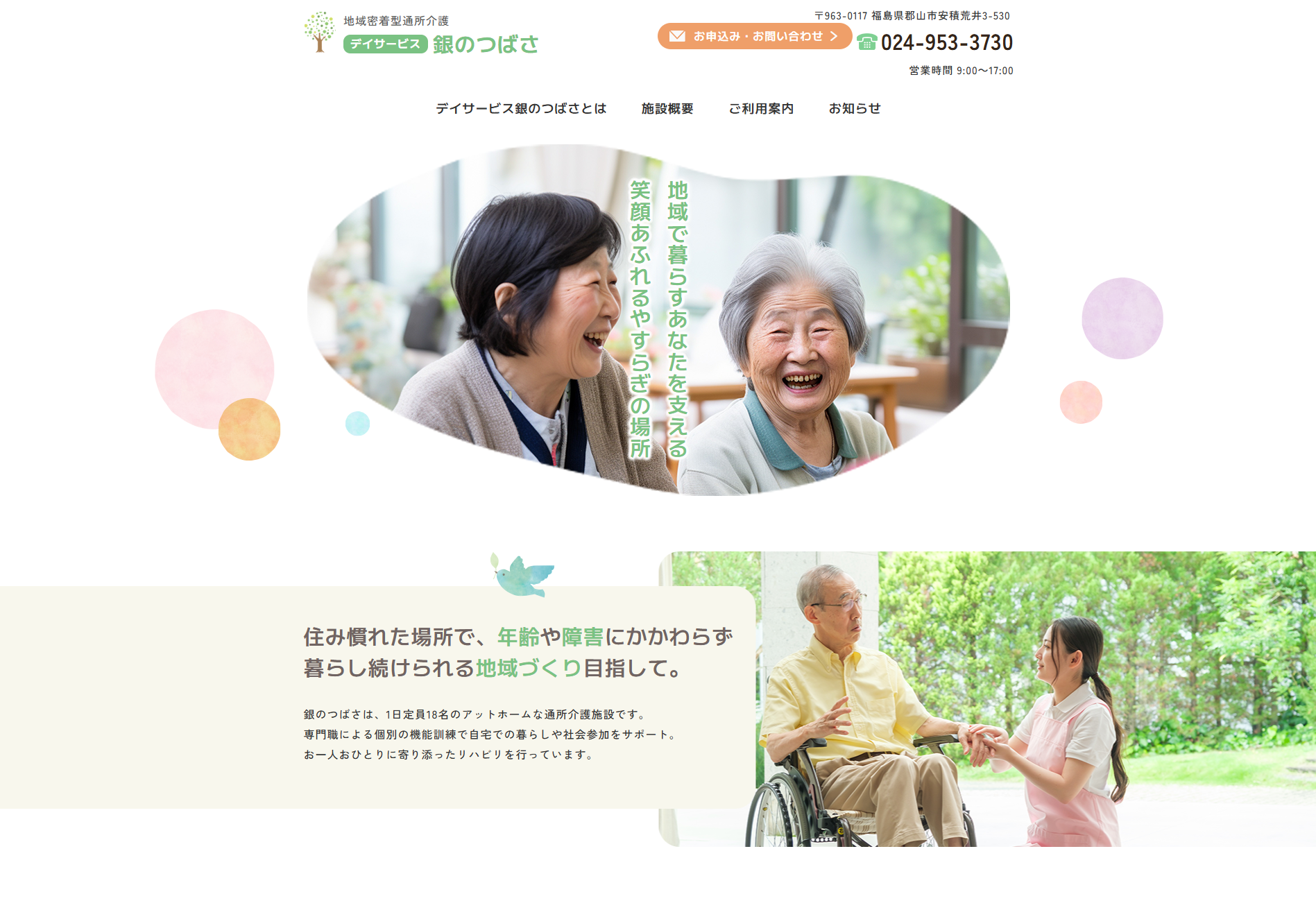 福島県郡山市の地域密着型通所介護施設【デイサービス銀のつばさ様】のホームページを制作させていただきました。