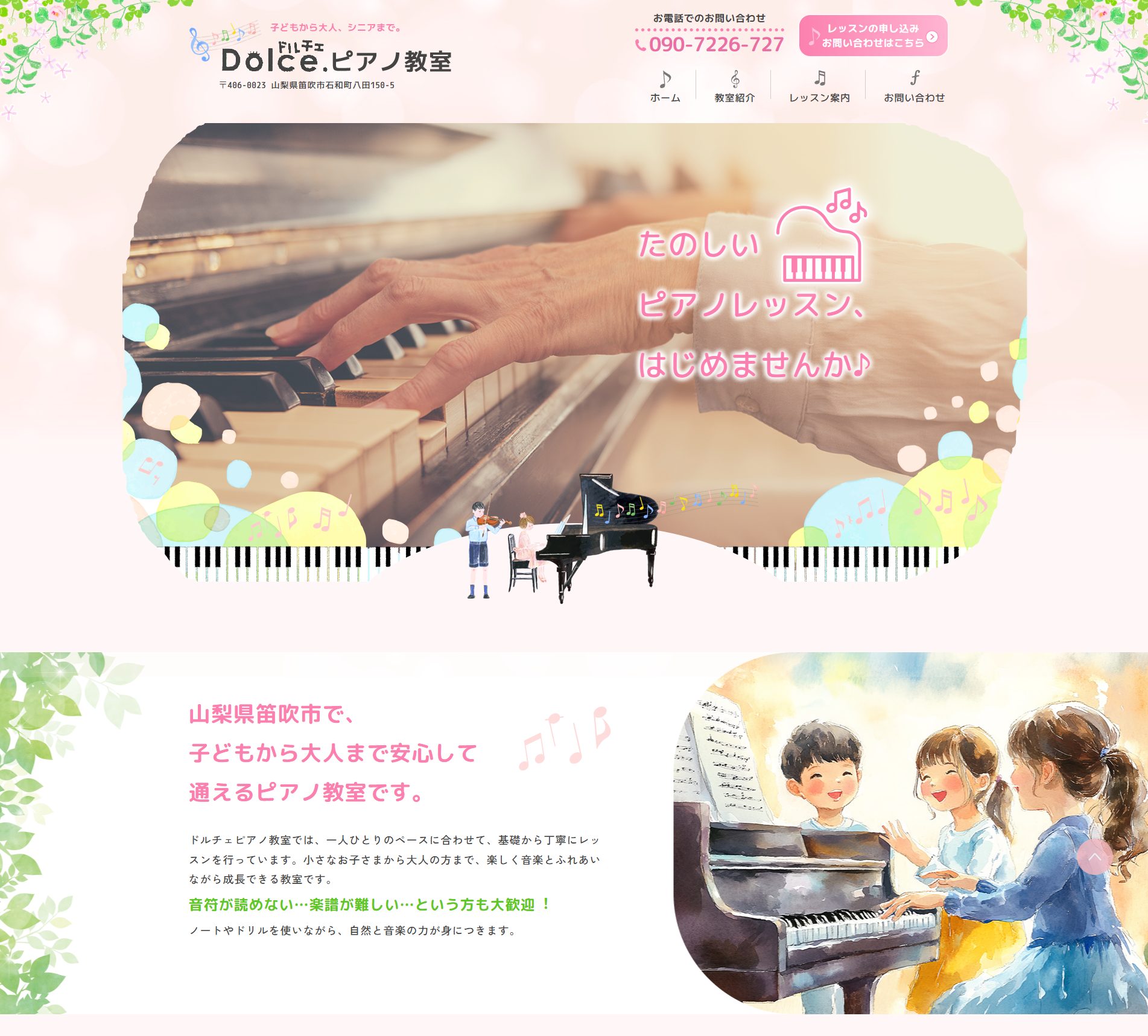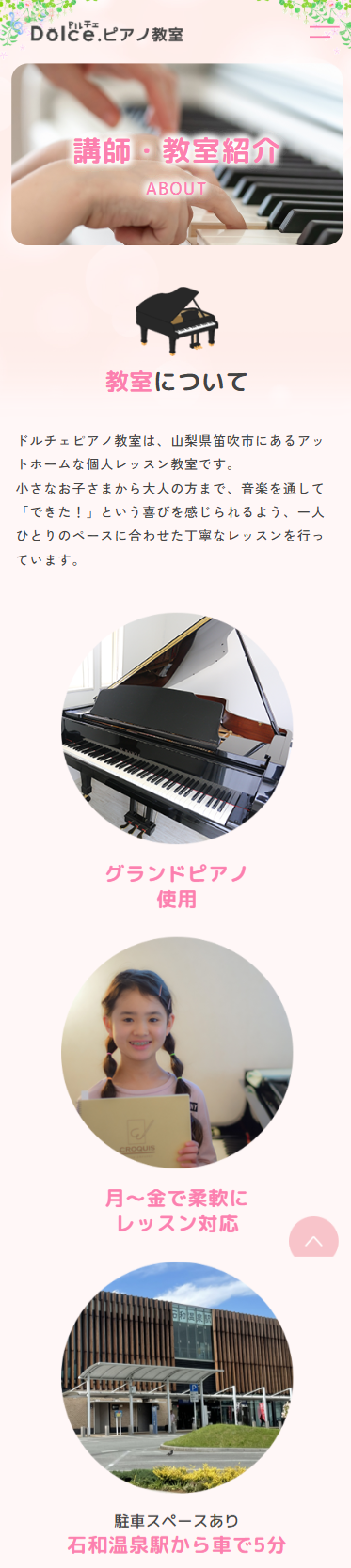 山梨県笛吹市にあるピアノ教室【ドルチェピアノ教室様】のホームページを制作させていただきました。