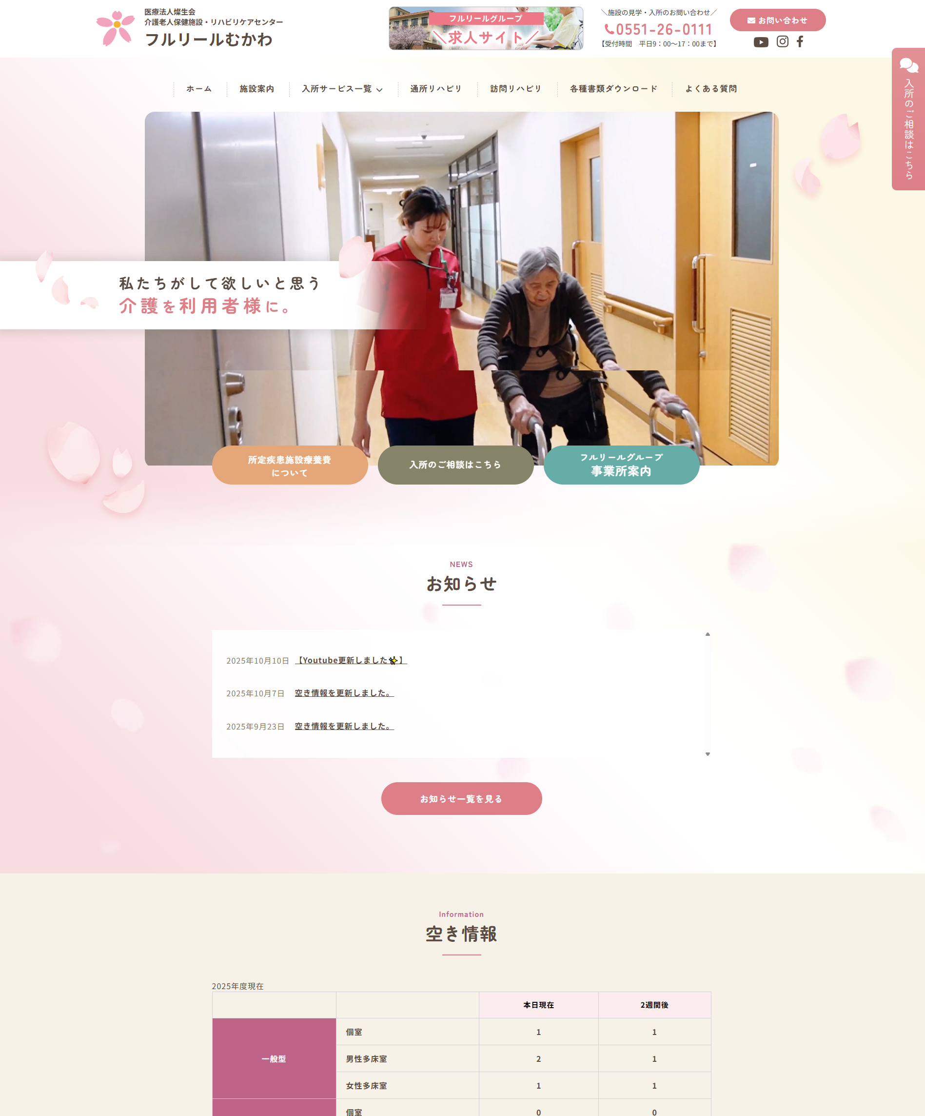 山梨県北杜市の介護老人保健施設【フルリールむかわ様】のホームページを制作させていただきました。