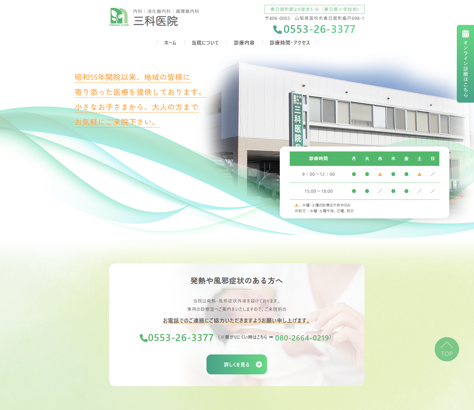 笛吹市春日居にて、地域の方々の健康を支える【三科医院様】のホームページを制作させていただきました。