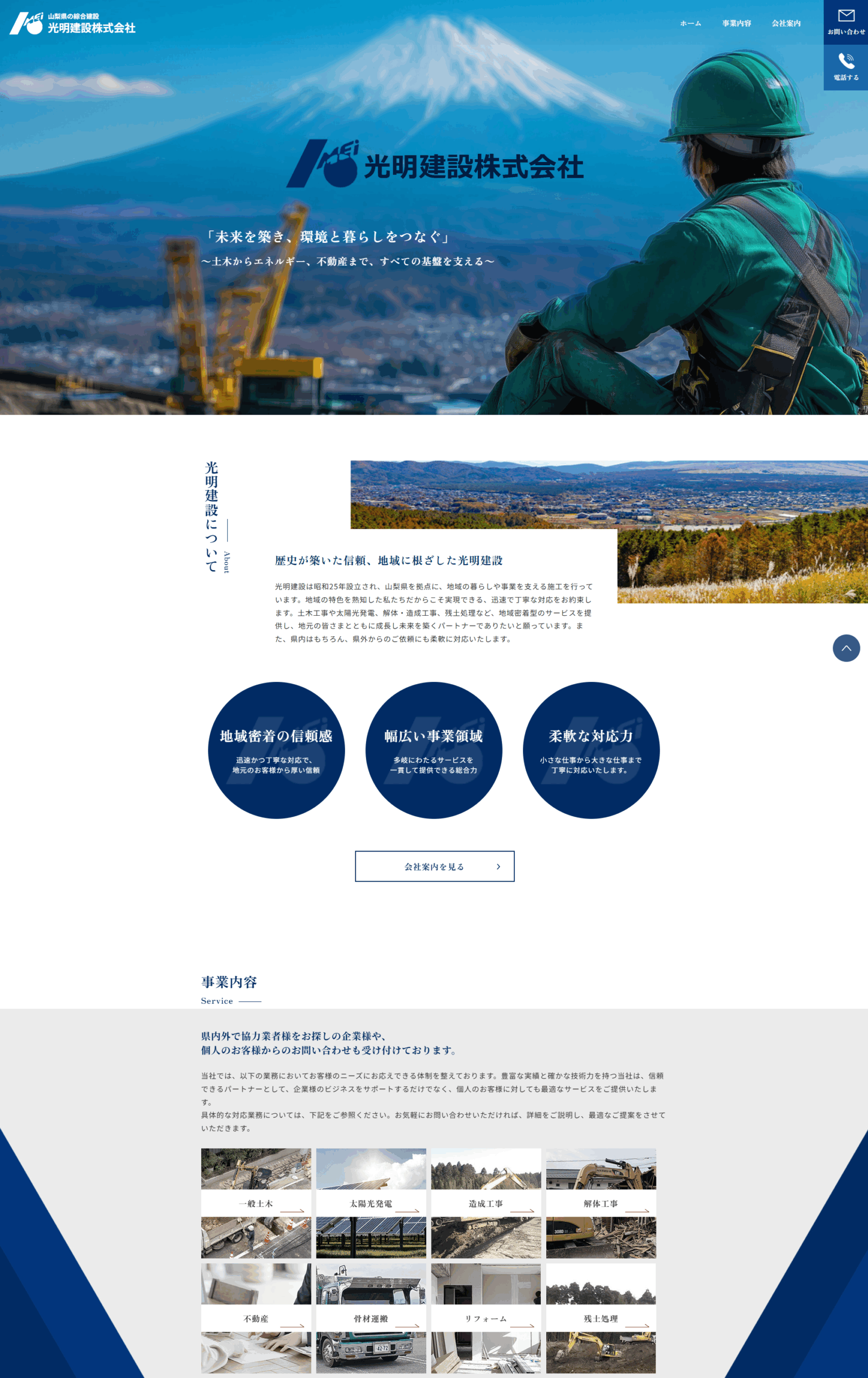 山梨県南アルプス市にある総合建設会社【光明建設株式会社様】のホームページを制作しました。
