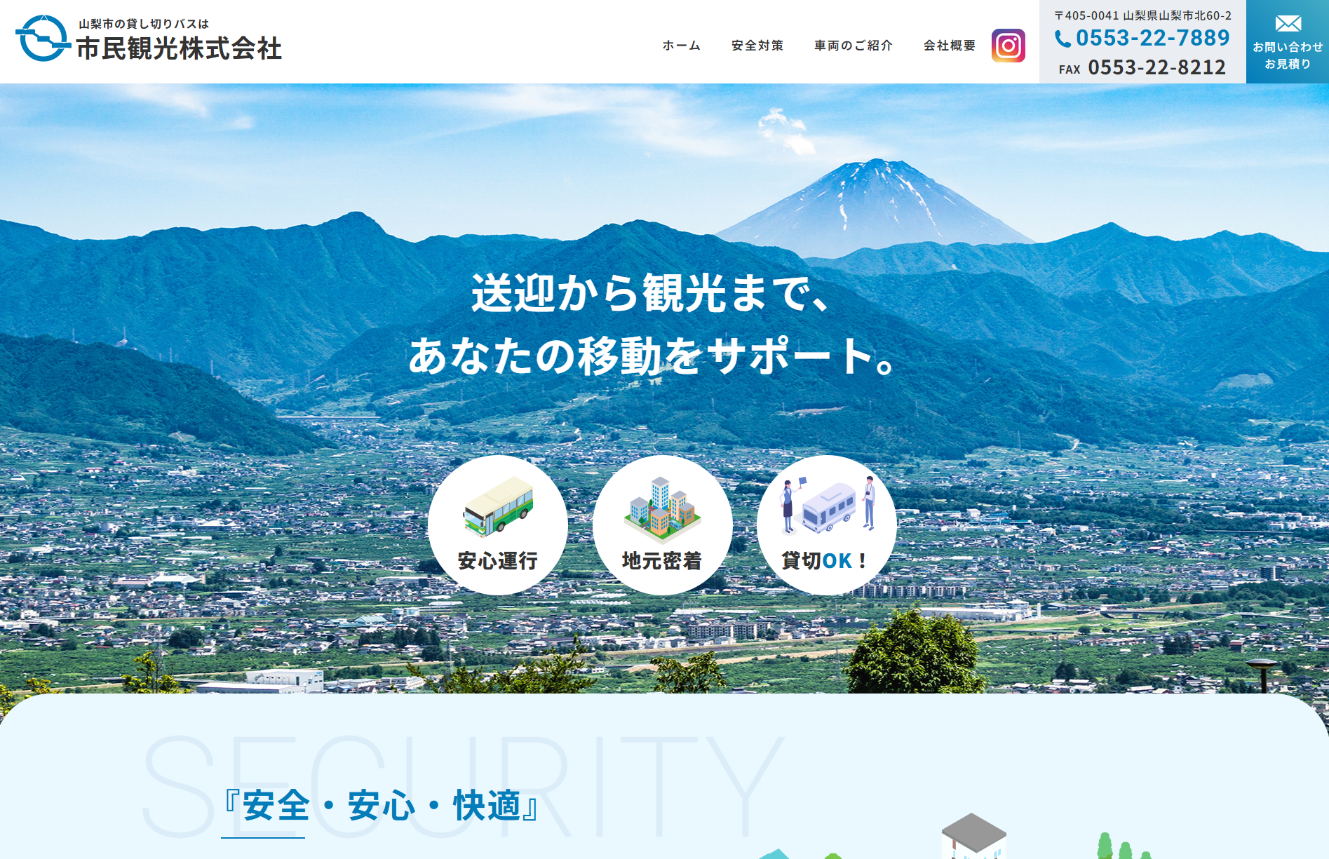 山梨県山梨市で貸切・送迎バスを運営する【市民観光株式会社様】ホームページを制作させていただきました。