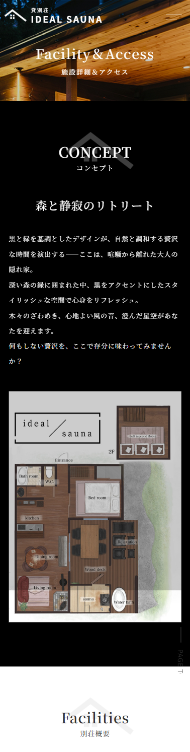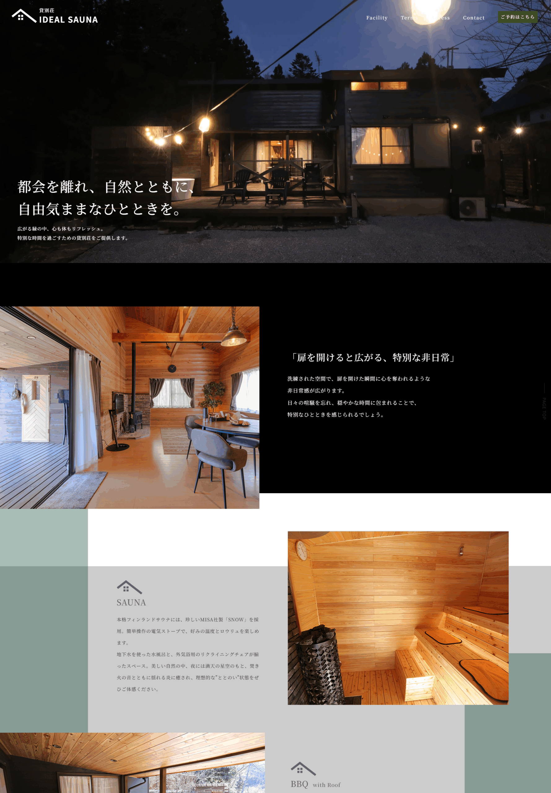 山梨県道志村にある貸別荘【IDEAL_SAUNA様】のホームページを制作させていただきました。