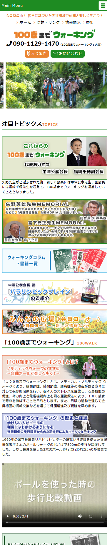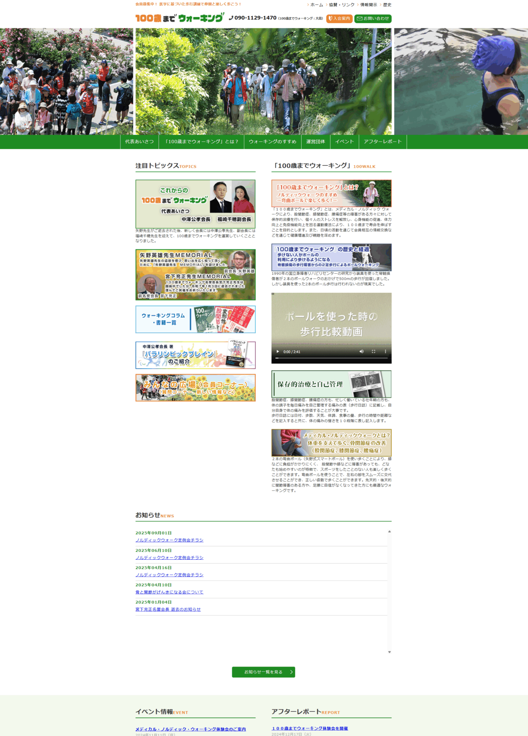 健康維持を支援する団体【100歳までウォーキング様】のホームページを制作させていただきました。
