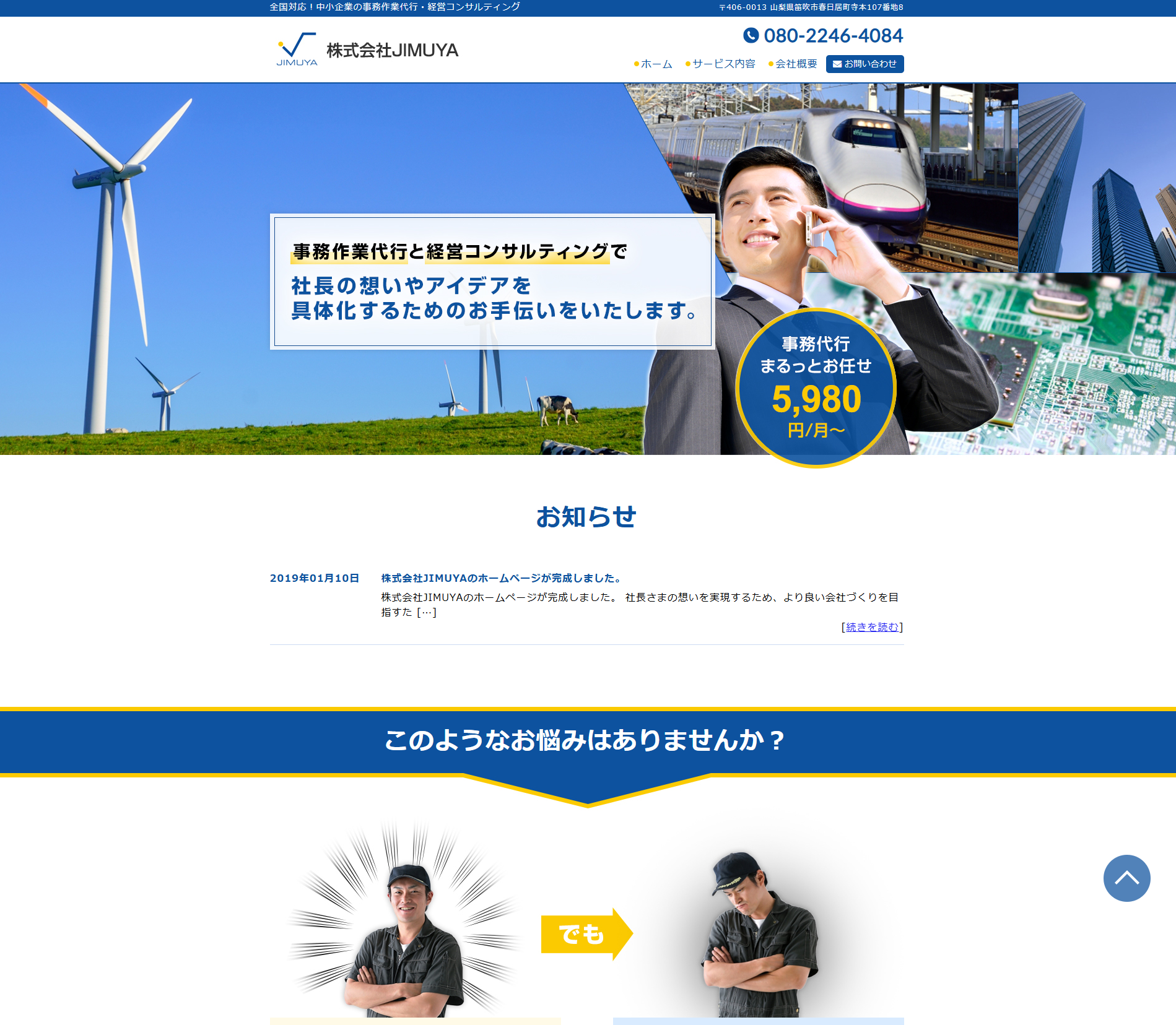 山梨県笛吹市の経営コンサルタント会社【株式会社JIMUYA様】のホームページを制作させていただきました。