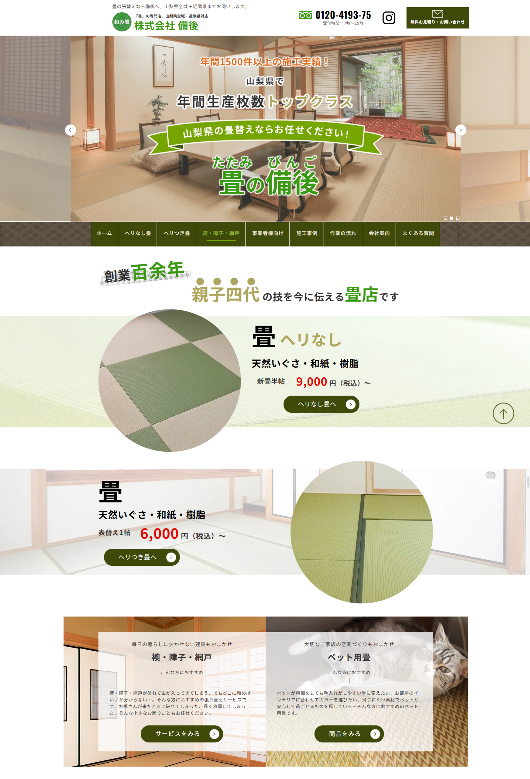 コーポレートカラーを用いたデザインで、サービス内容を分かりやすくカテゴリー分けし、代表者の顔が分かることで安心できる工夫をしております。