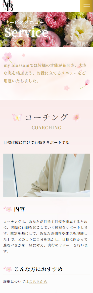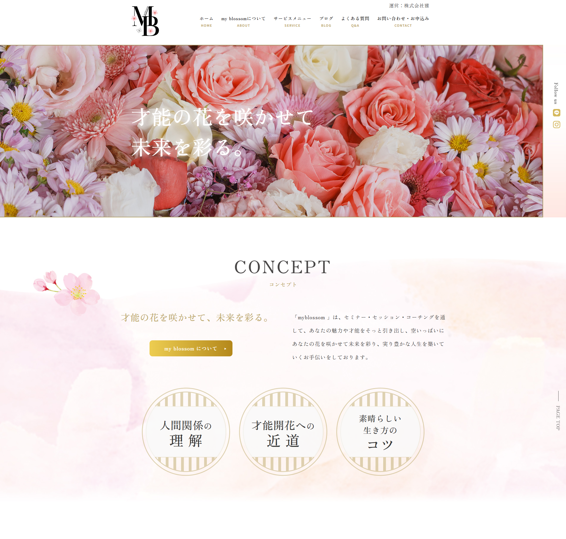 株式会社雅様が運営する【myblossom様】のホームページを制作させていただきました。