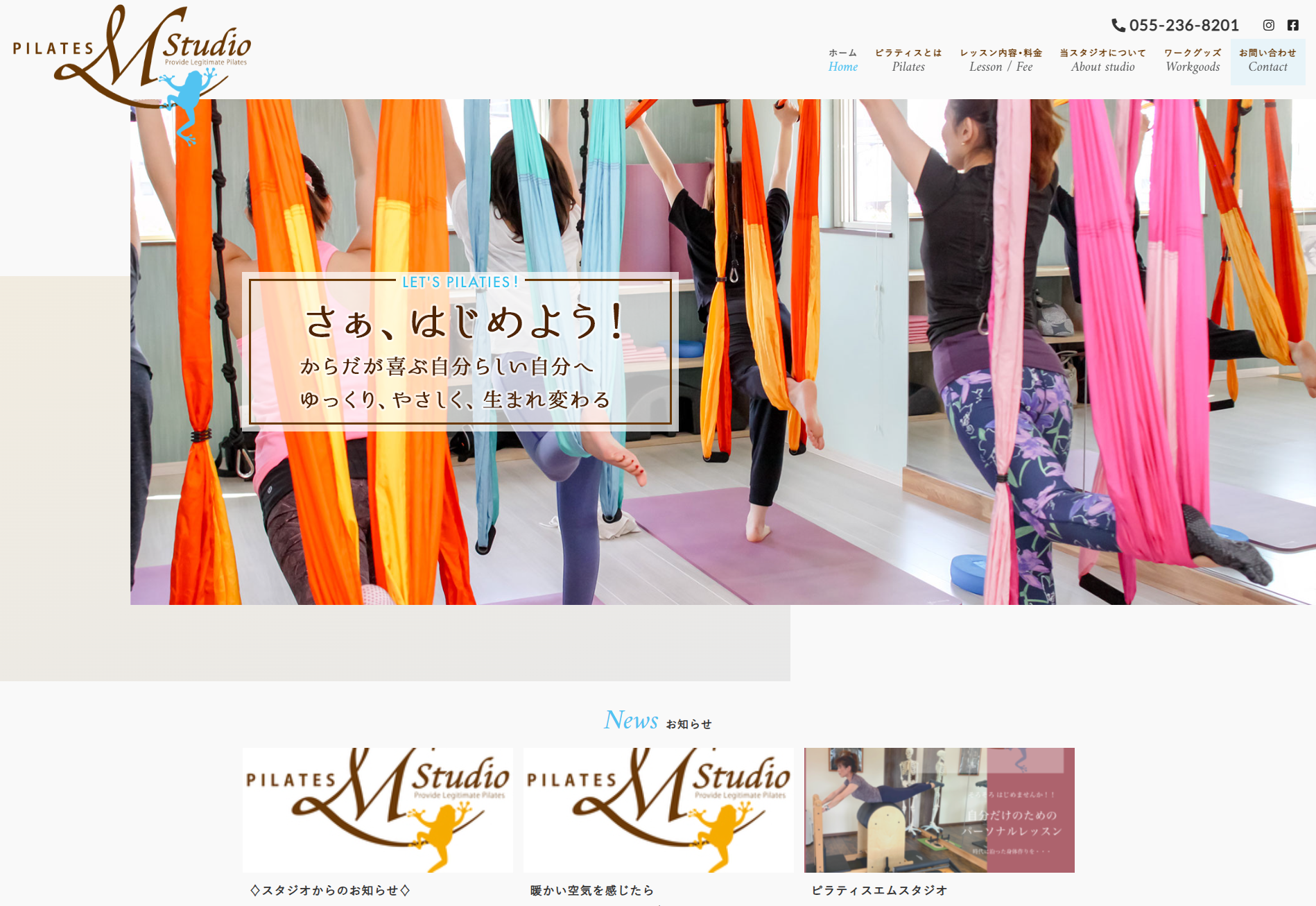 山梨県昭和町にあるピラティススタジオ【PILATES M Studio(ピラティスエムスタジオ)様】のホームページを制作させていただきました。