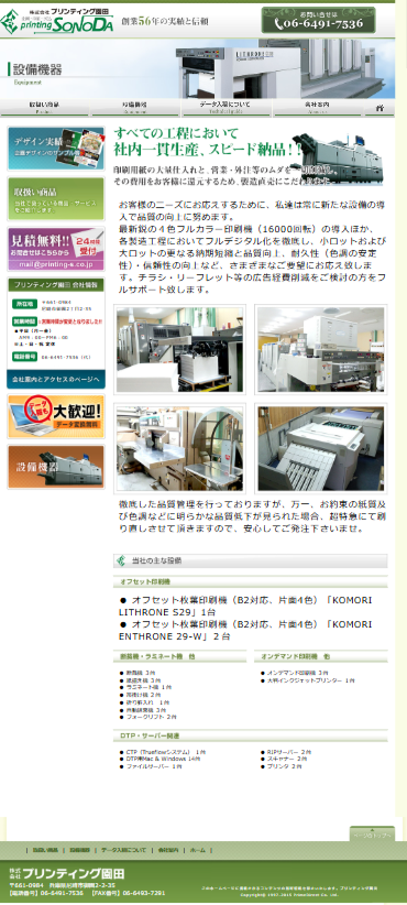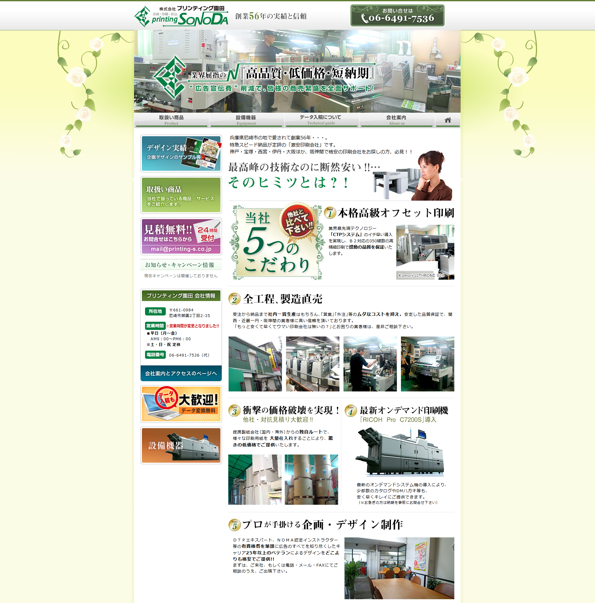 兵庫県尼崎市にある印刷所【プリンティング園田様】のホームページを制作させていただきました。