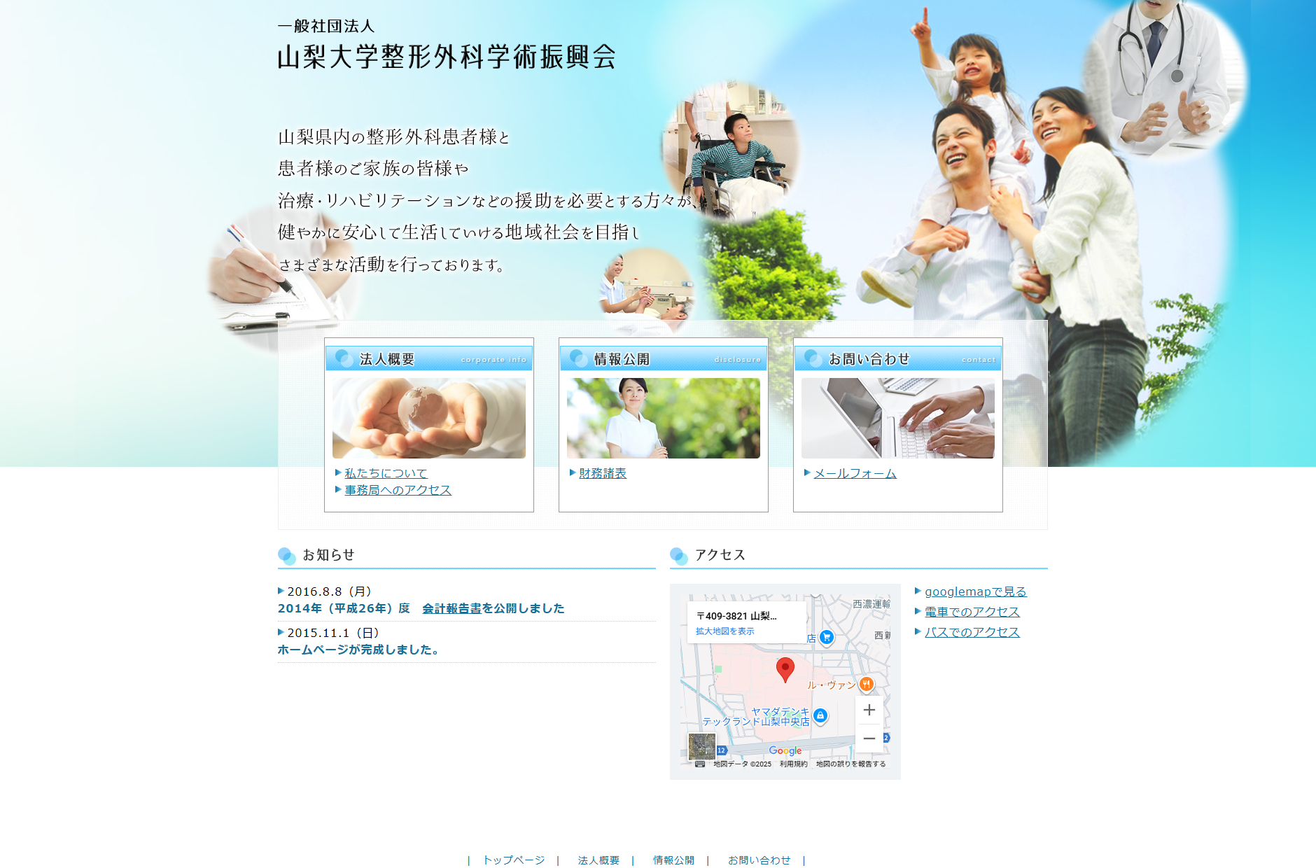山梨県中央市の一般社団法人【山梨大学整形外科学術振興会様】のホームページを制作させていただきました。