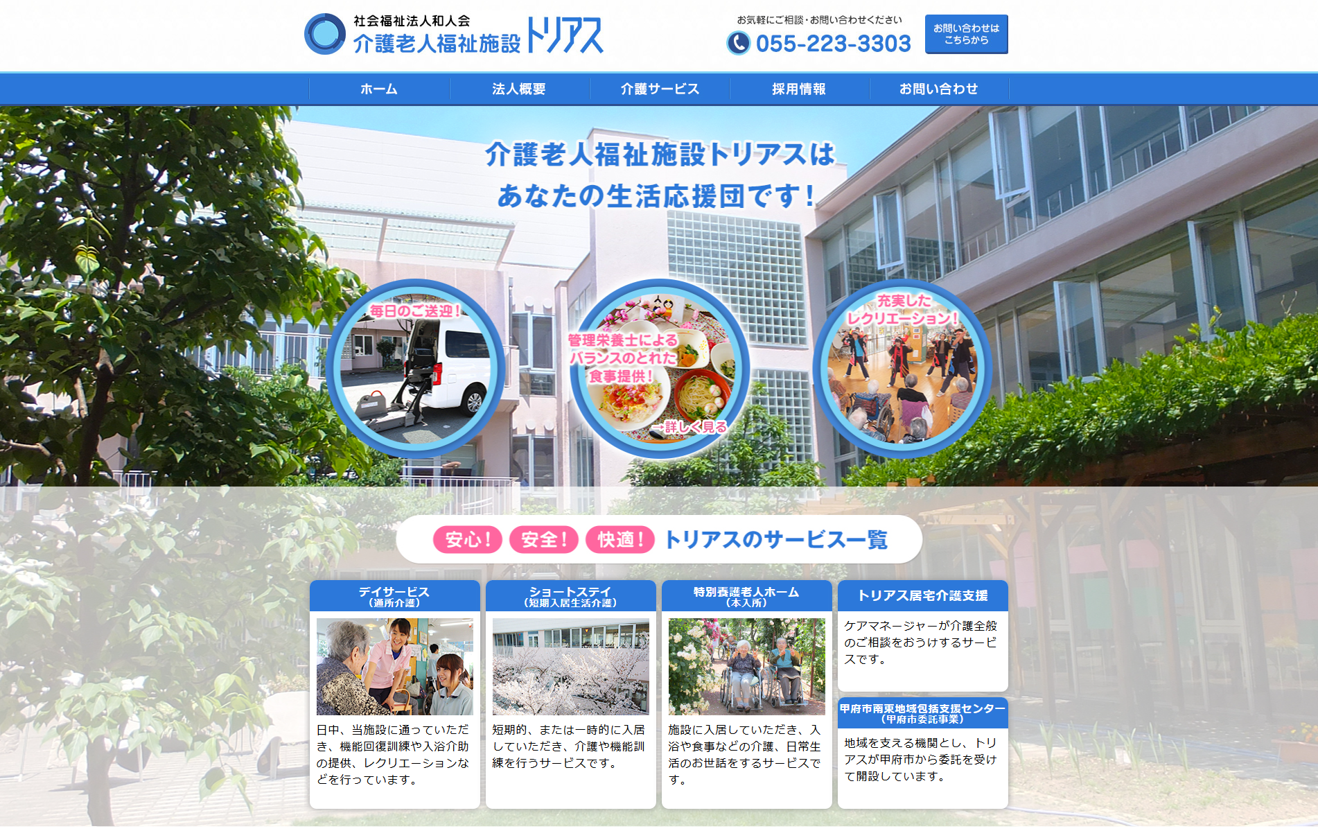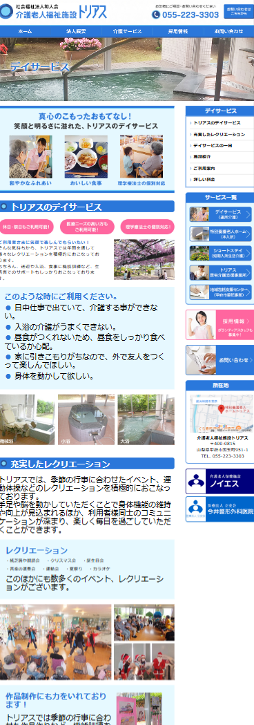 山梨県甲府市にある介護老人福祉施設【トリアス様】のホームページを制作させていただきました。