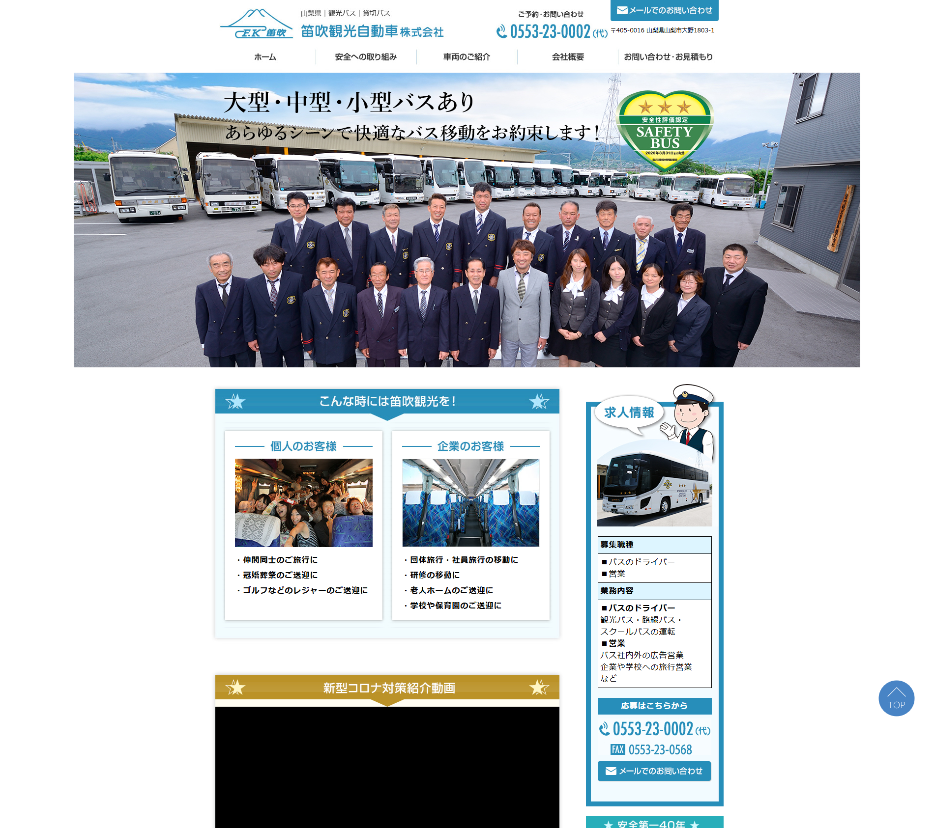 山梨県山梨市の観光バス会社【笛吹観光自動車株式会社様】のホームページを制作させていただきました。