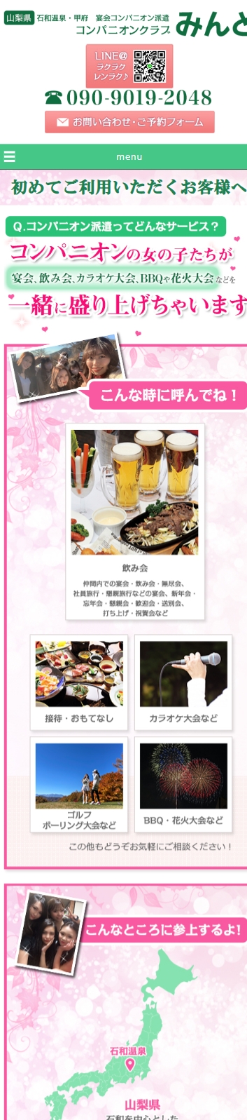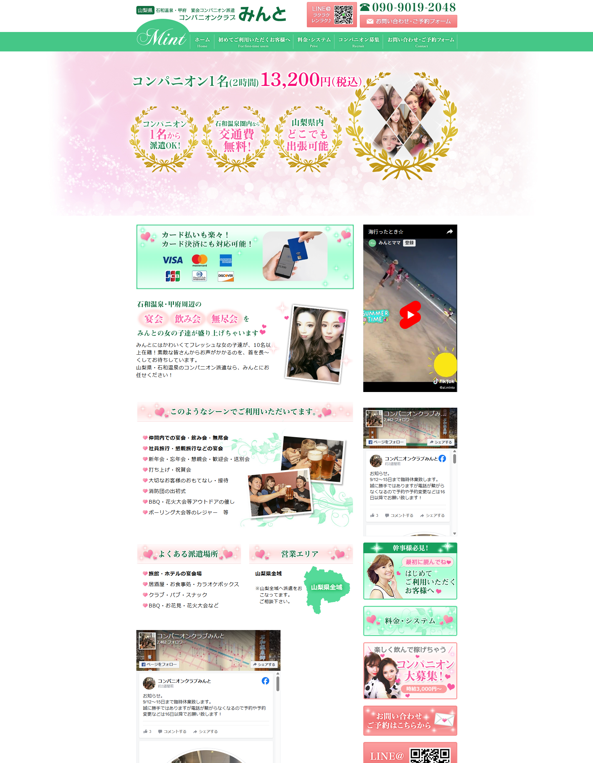 山梨県石和温泉・甲府宴会派遣コンパニオンクラブ【コンパニオンクラブみんと様】のホームページを制作させていただきました。