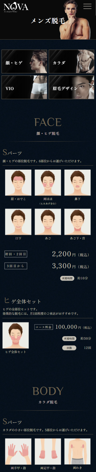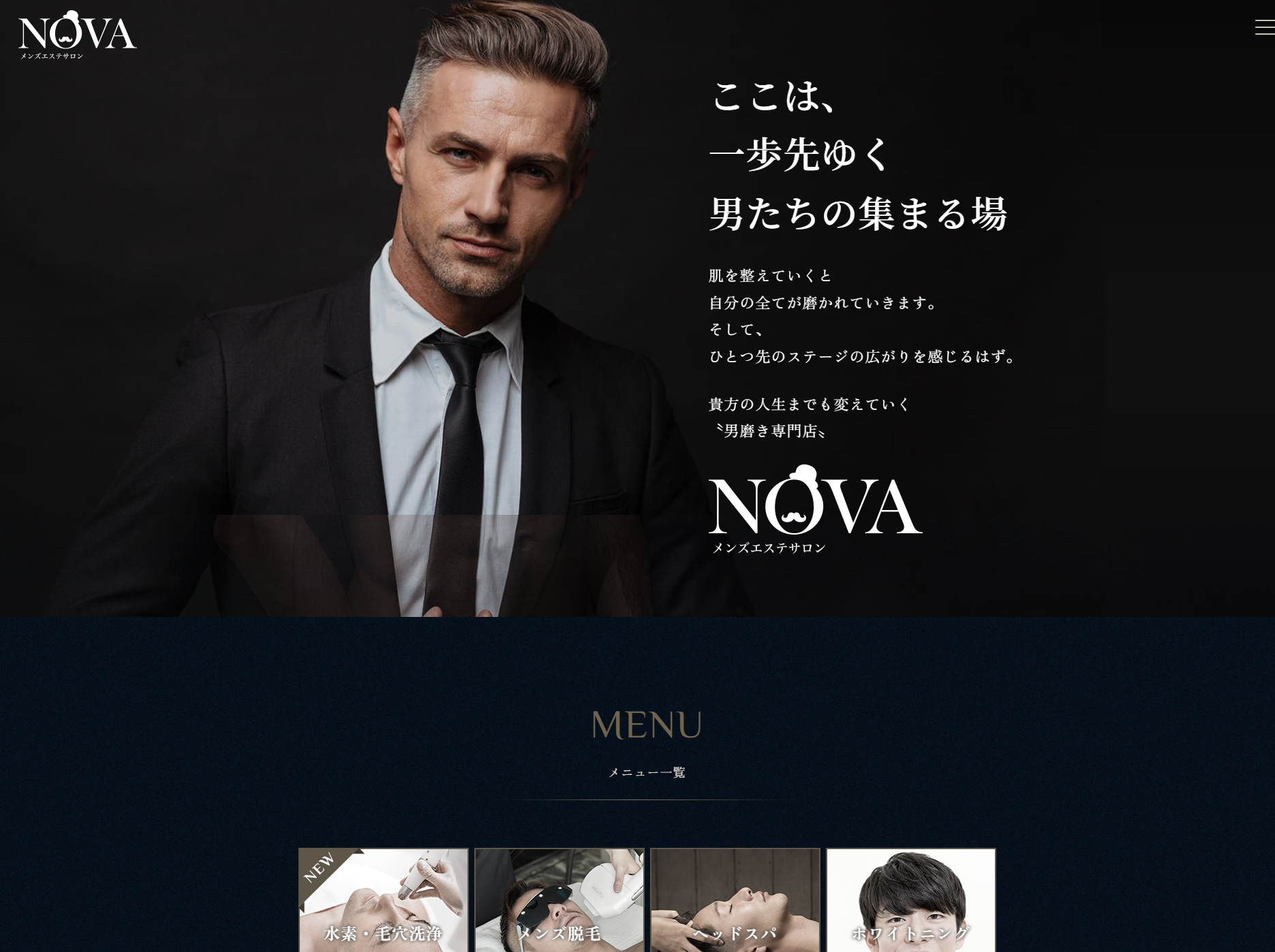 山梨県甲府市にある男磨き専門店【メンズエステサロンNOVA様】のホームページを制作させていただきました。