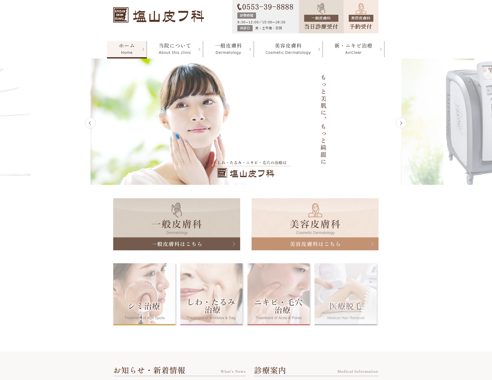 山梨県塩山にある皮フ科【塩山皮フ科様】のホームページを制作させていただきました。