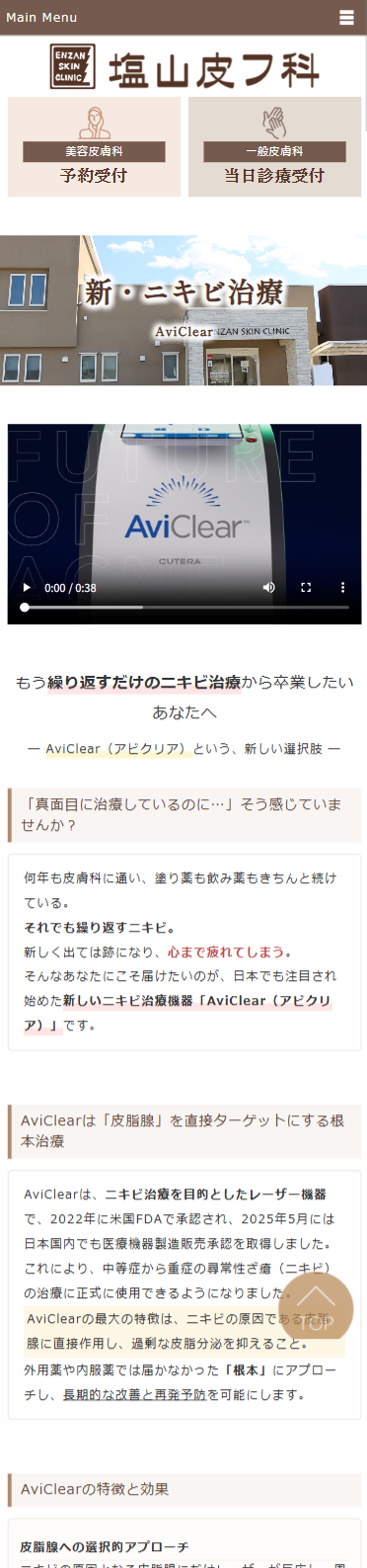 一般皮膚科と美容皮膚科それぞれの目的にあわせて、必要な情報にストレスなくアクセスできるようにアンカーリンクを設置しました。