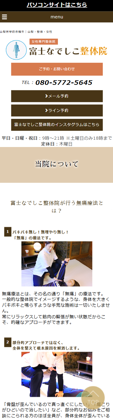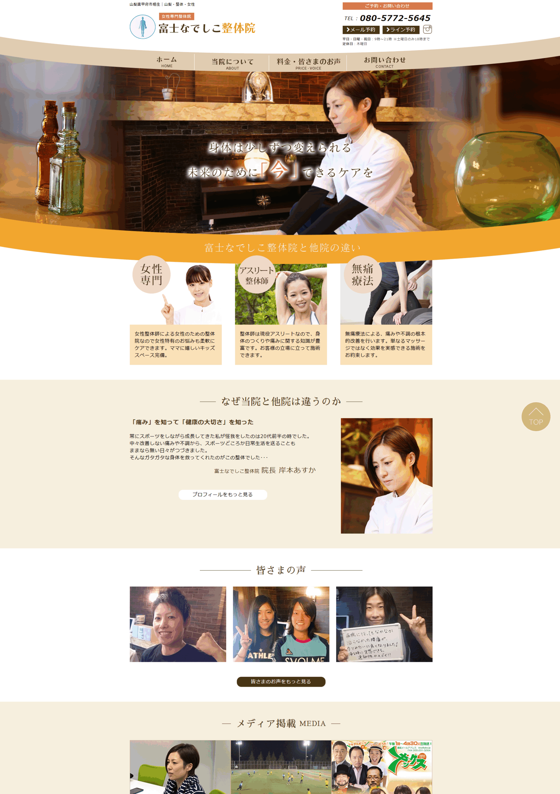 山梨県甲府市にある女性専門整体院【富士なでしこ整体院様】のホームページを制作させていただきました。