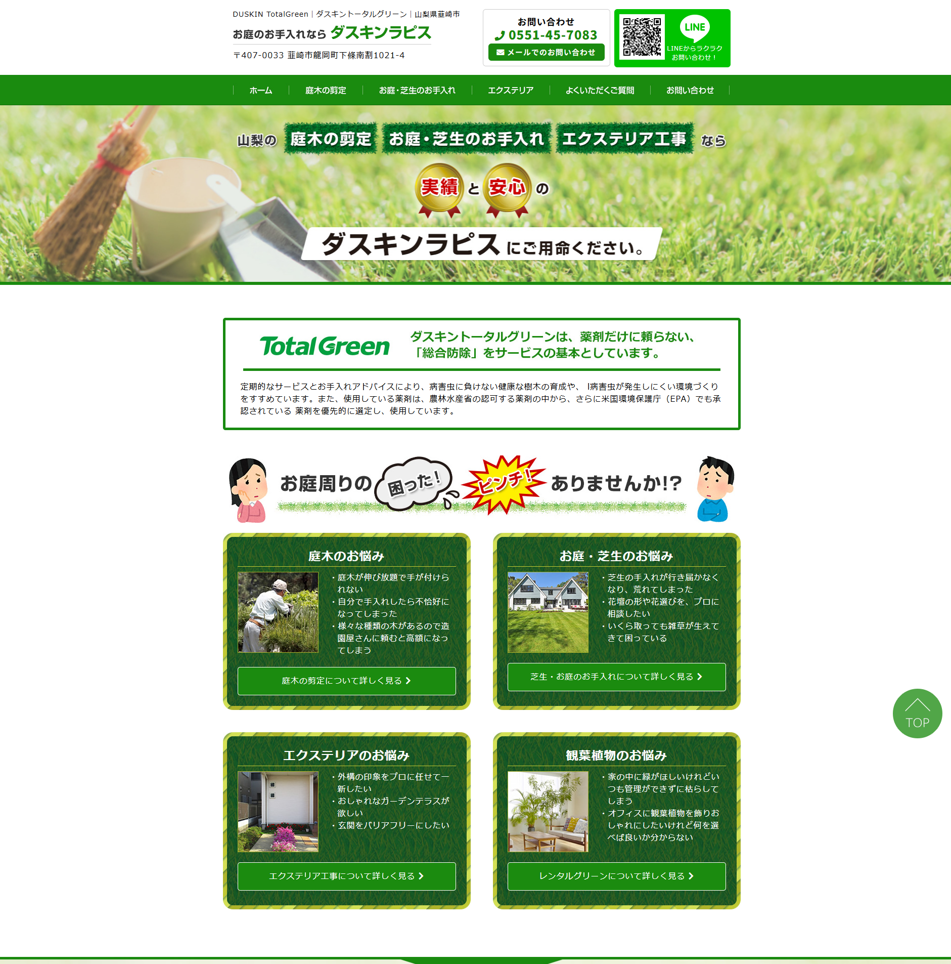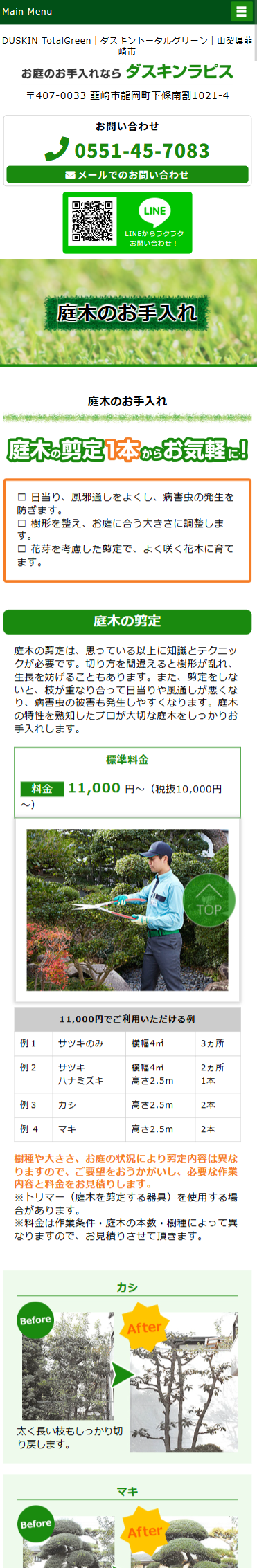 山梨県韮崎市にある【庭のお手入れ|ダスキンラピス様】のホームページを制作させていただきました。