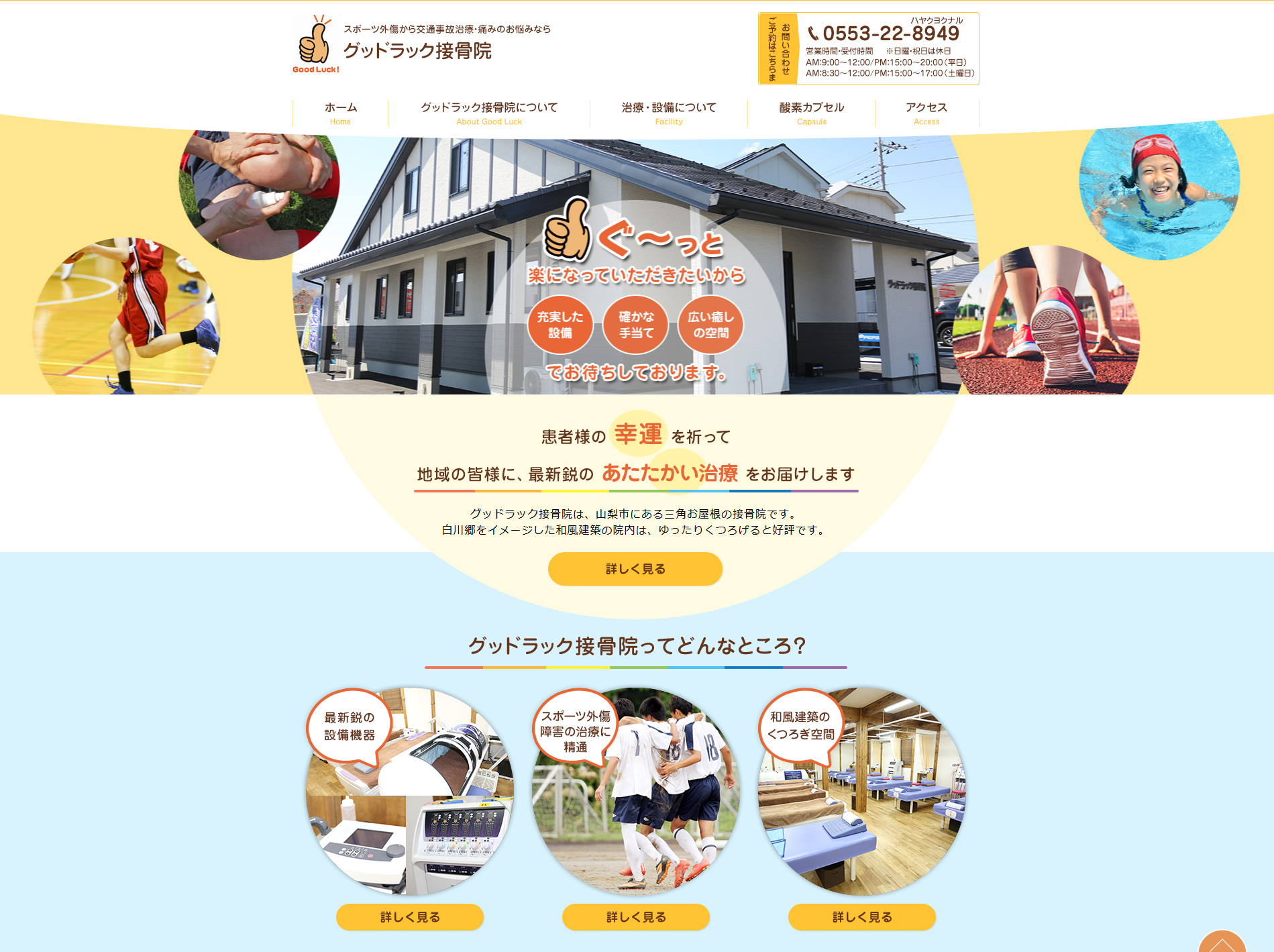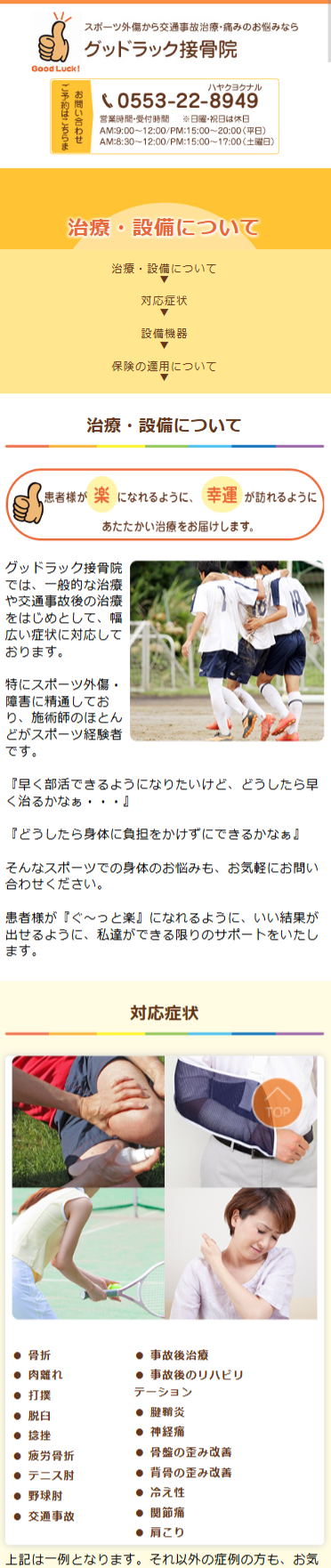 山梨県山梨市にある接骨院【グッドラック接骨院様】のホームページを制作させていただきました。
