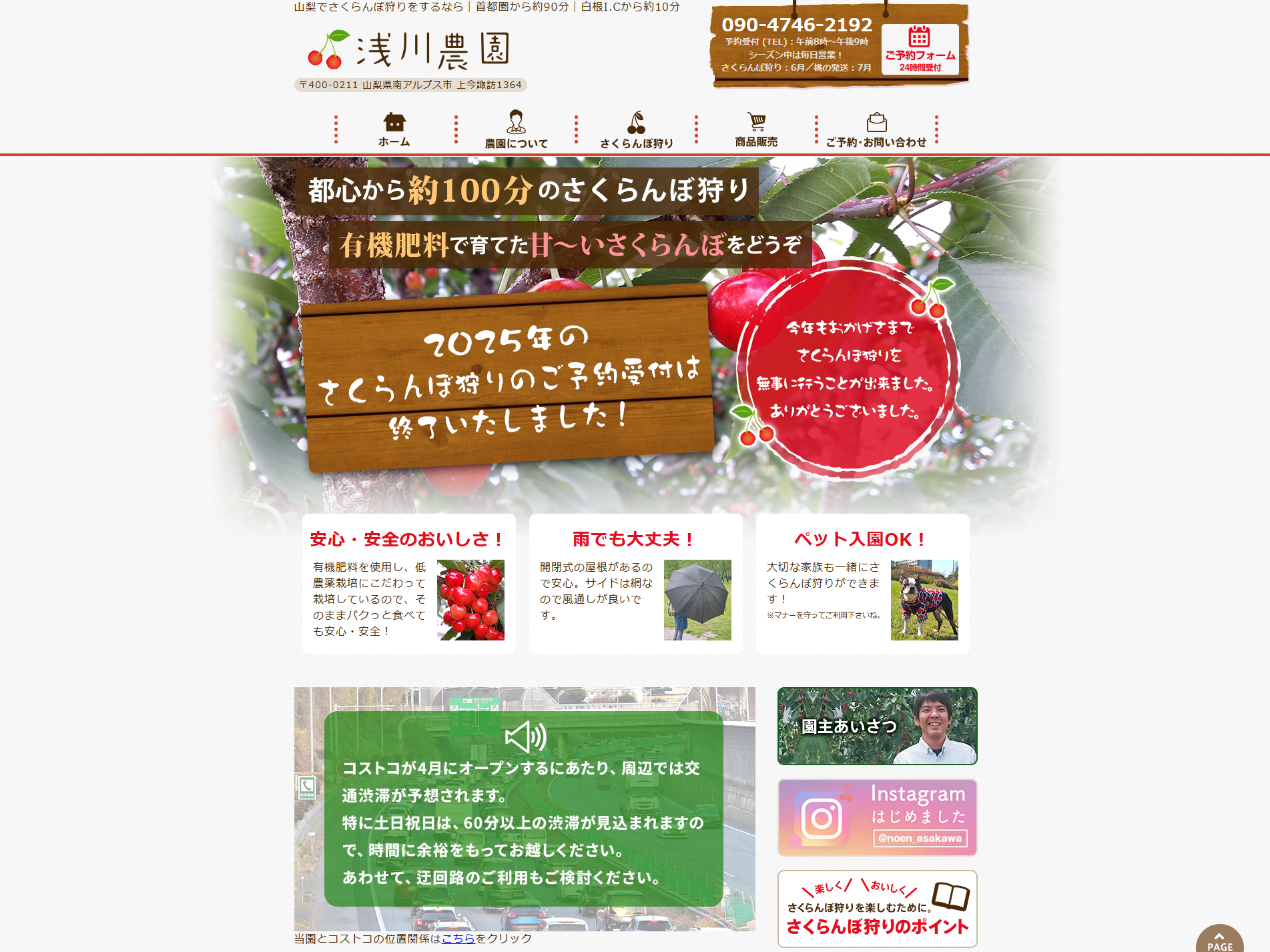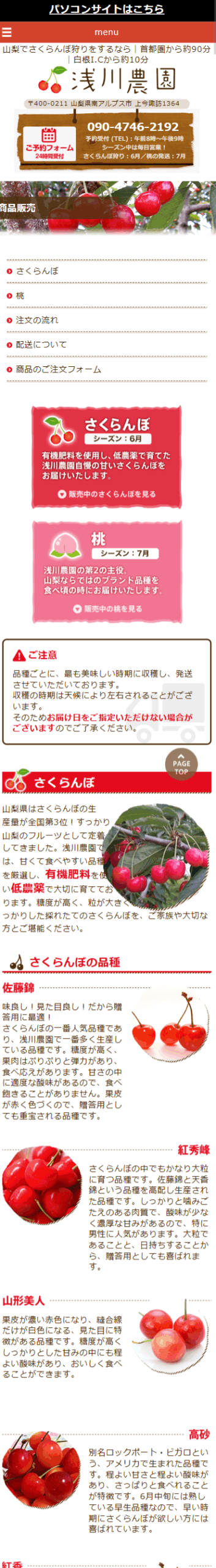 山梨県南アルプス市にある果樹農園【浅川農園様】のホームページを制作させていただきました。