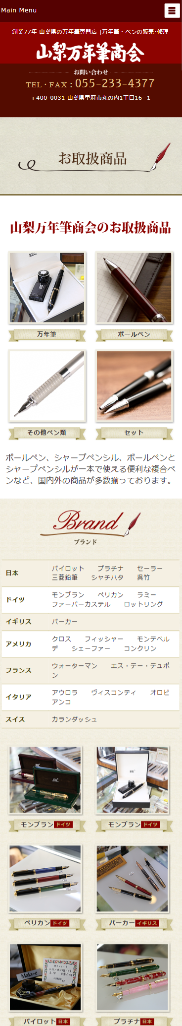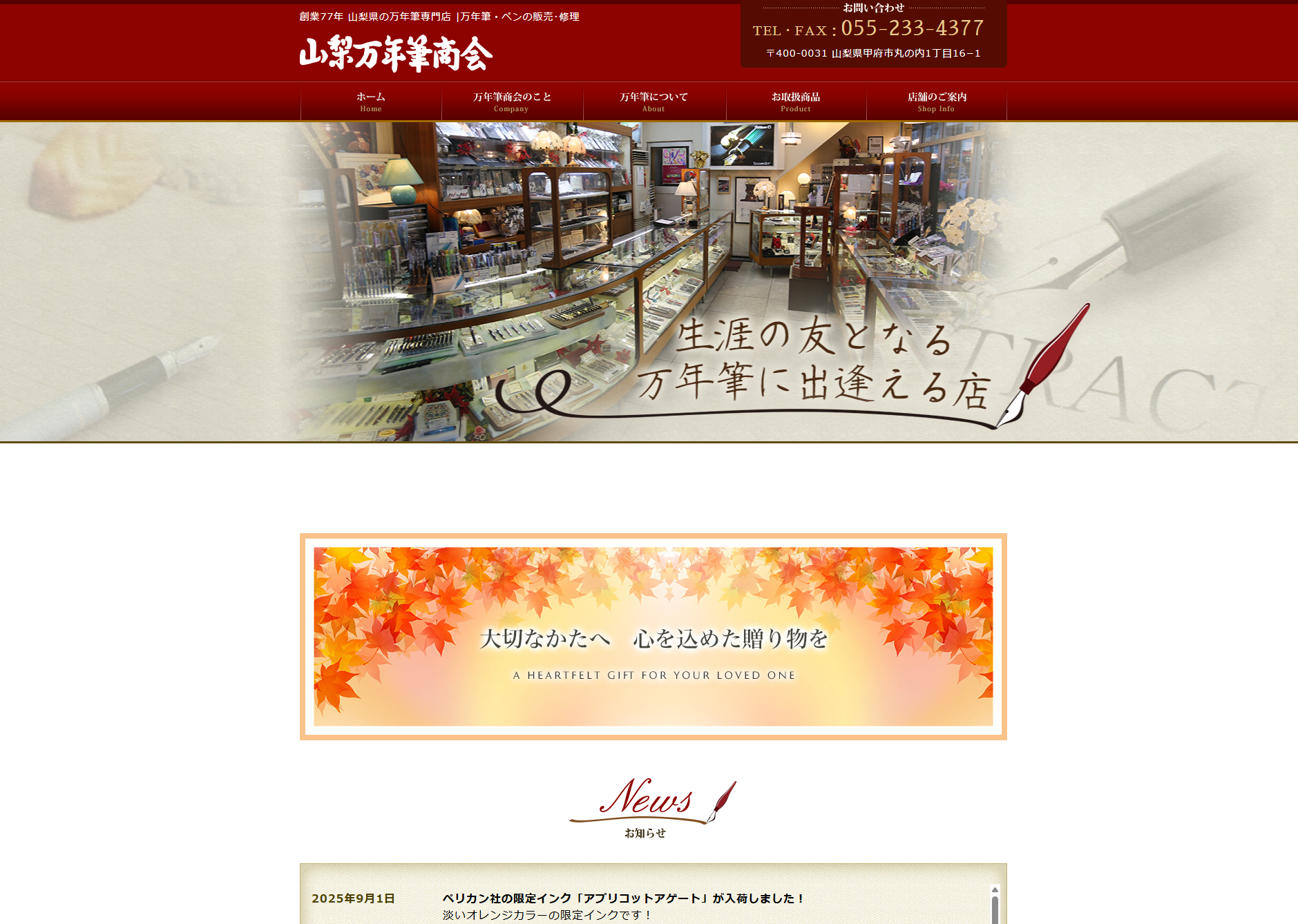 山梨県甲府市にある【山梨万年筆商会様】のホームページを制作させていただきました。