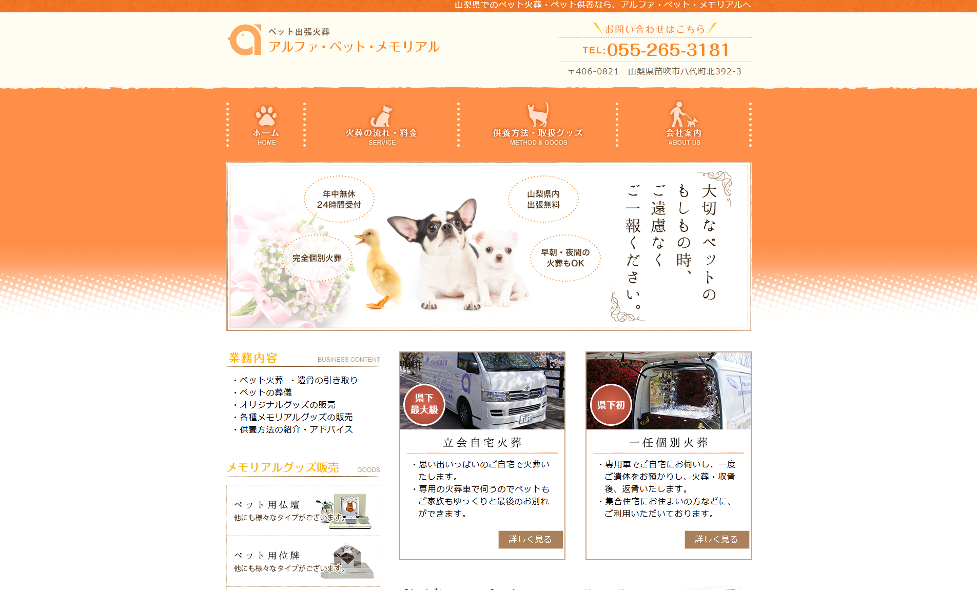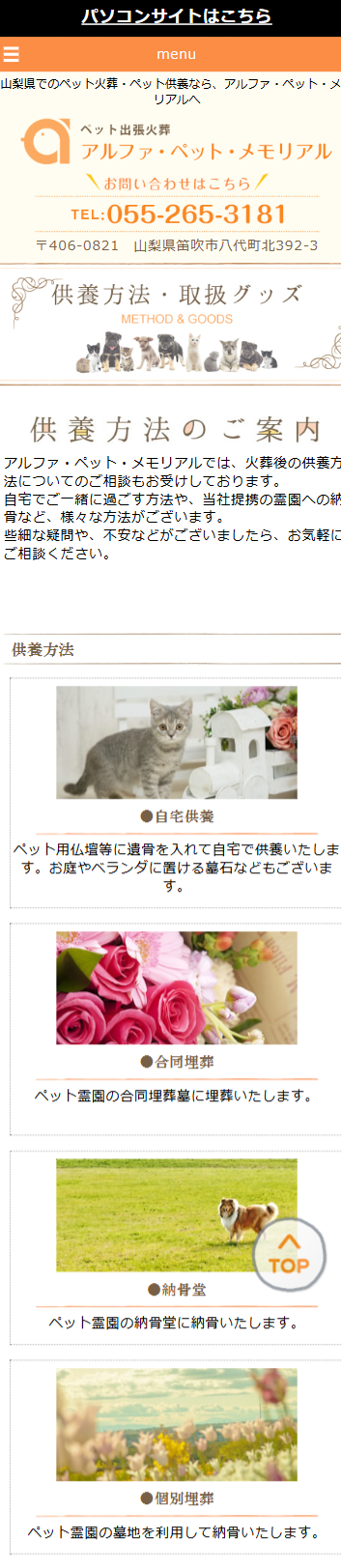 山梨県笛吹市にあるペット出張火葬【アルファ・ペット・メモリアル様】のホームページを制作させていただきました。