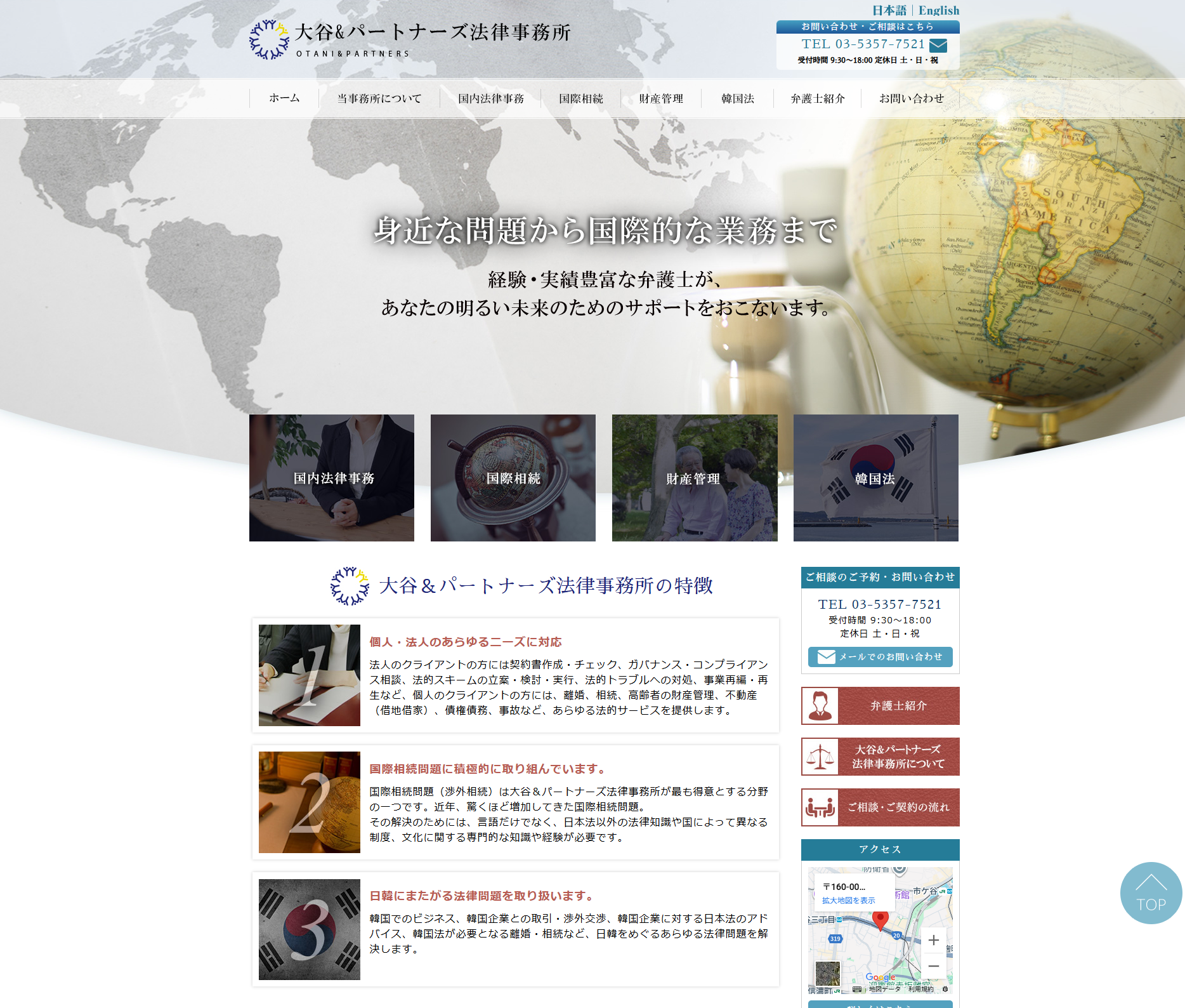 東京都新宿区の弁護士事務所【大谷&パートナーズ法律事務所様】のホームページを制作させていただきました。