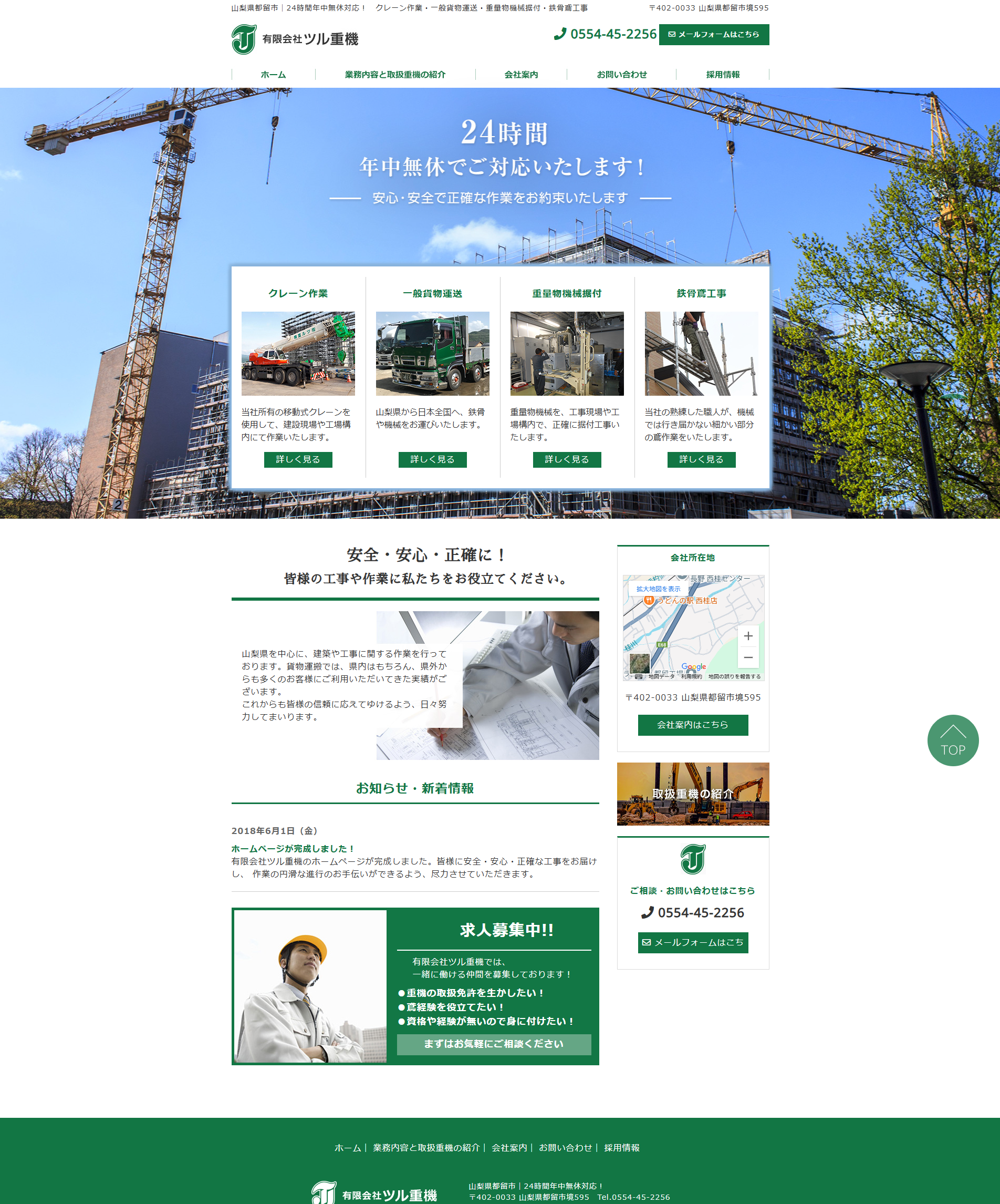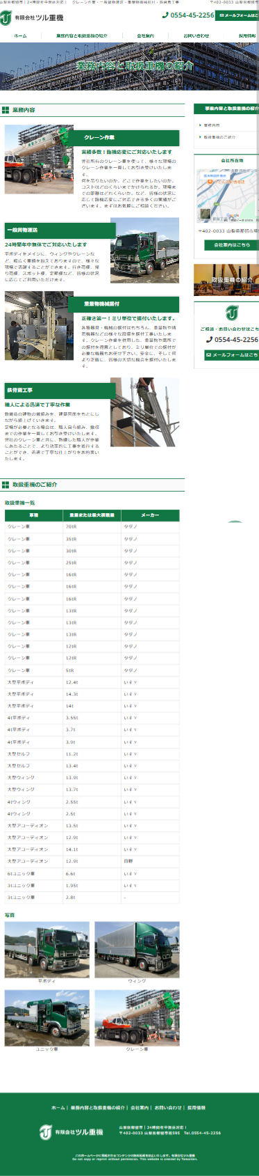 山梨県都留市にある【有限会社ツル重機様】のホームページを制作させていただきました。