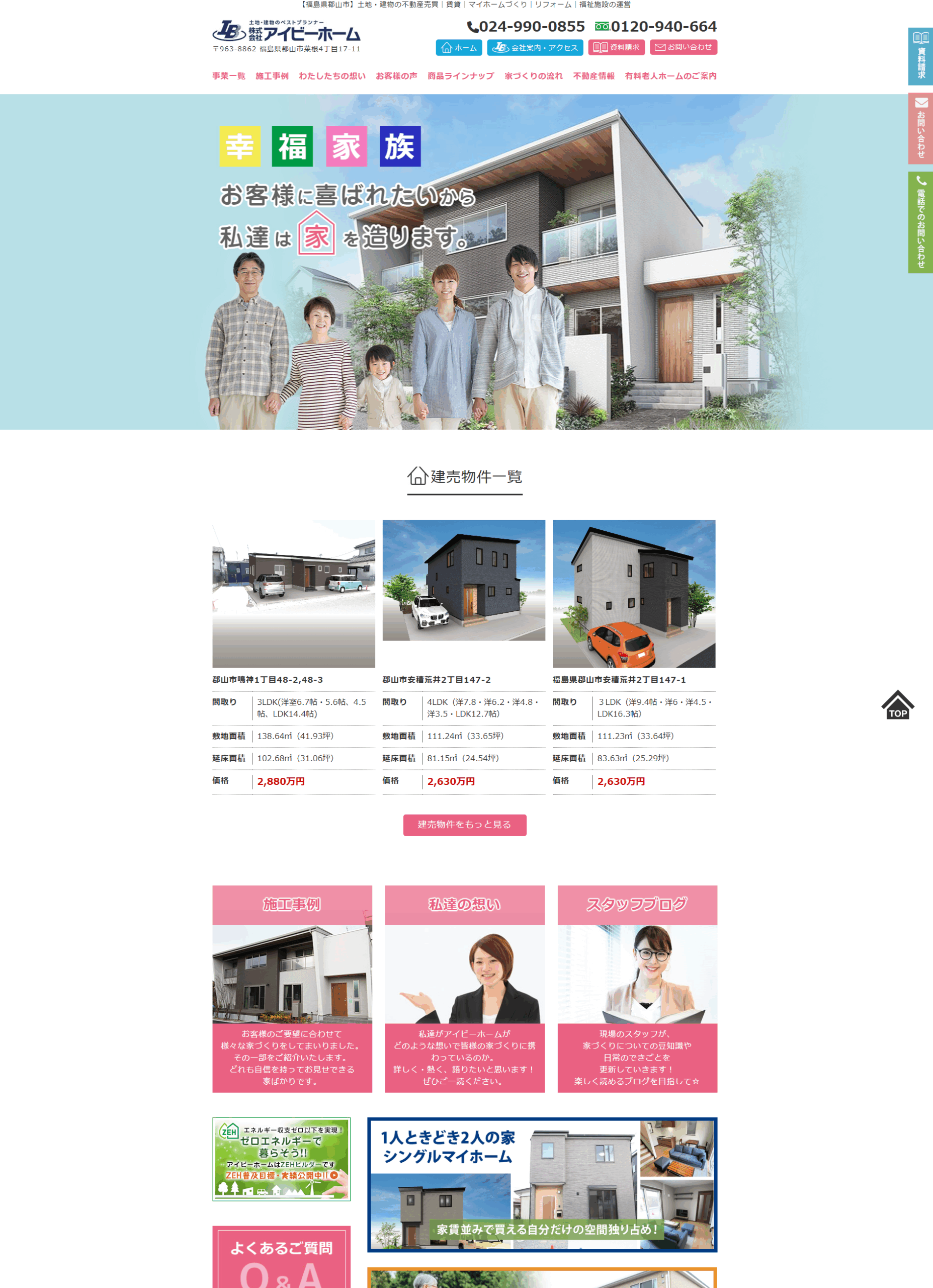 福島県郡山市で不動産売買を行う【株式会社アイビーホーム様】のホームページを制作させていただきました。
