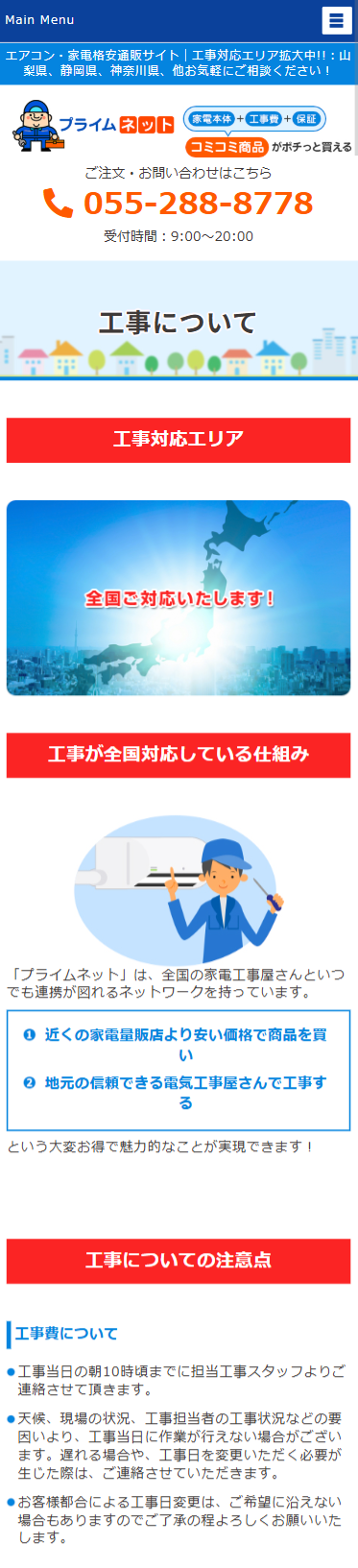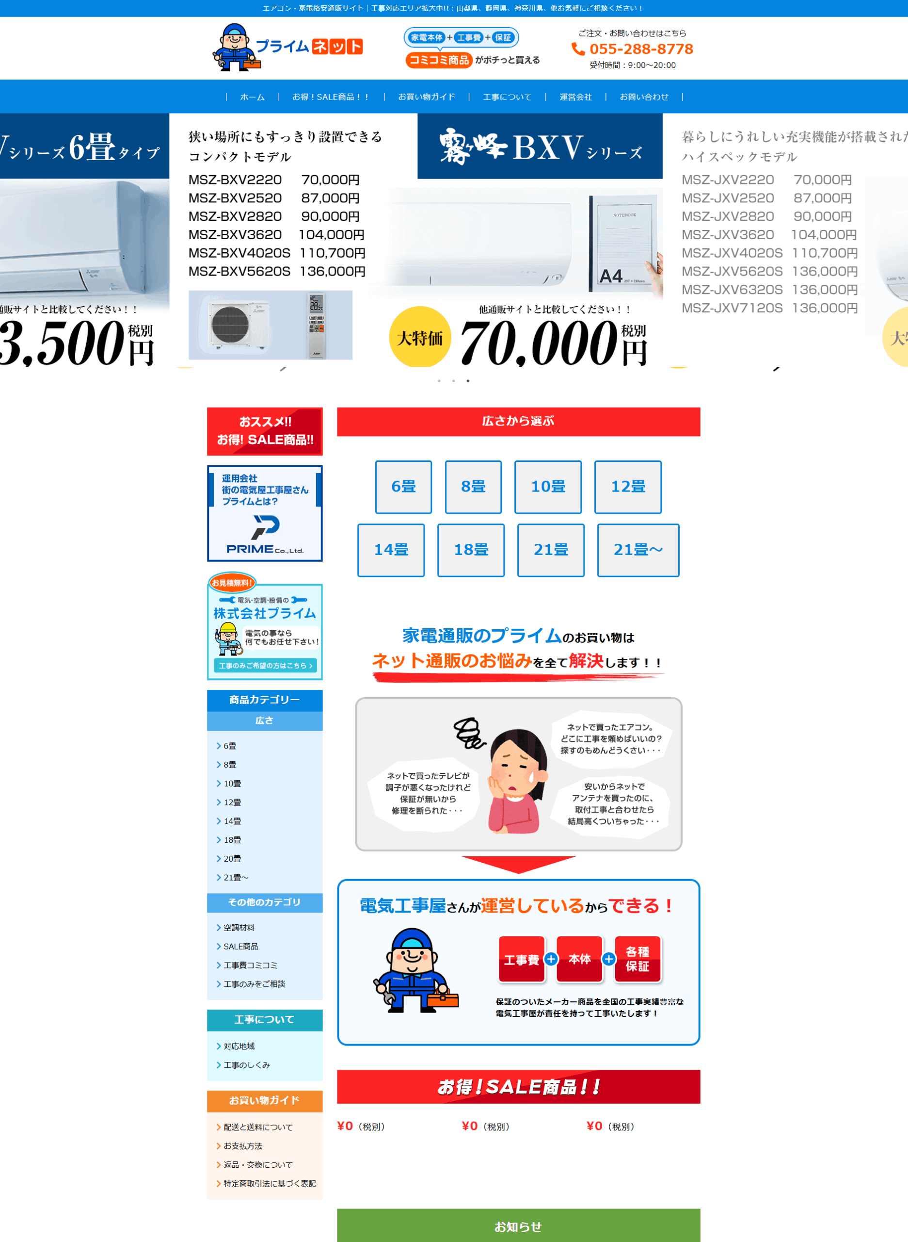 山梨県甲斐市に拠点を電気空調設備会社【プライムネット様】のホームページを制作させていただきました。