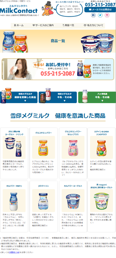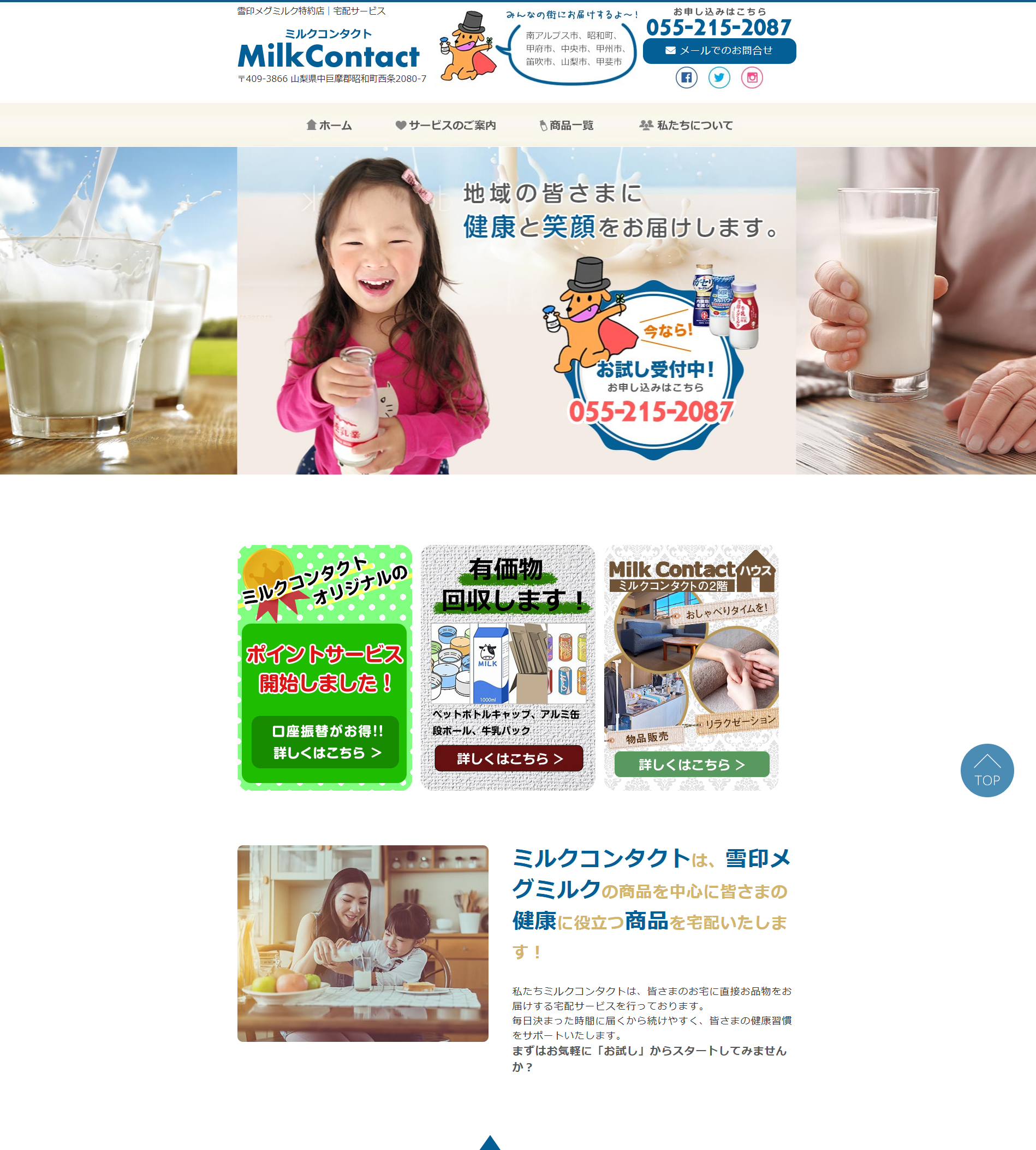 山梨県昭和町のメグミルク特約店【ミルクコンタクト様】のホームページを制作させていただきました。