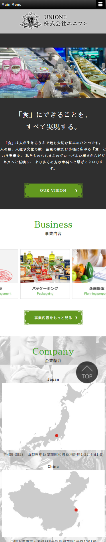 山梨県昭和町の食品加工・製造業【株式会社ユニワン様】のホームページを制作させていただきました。