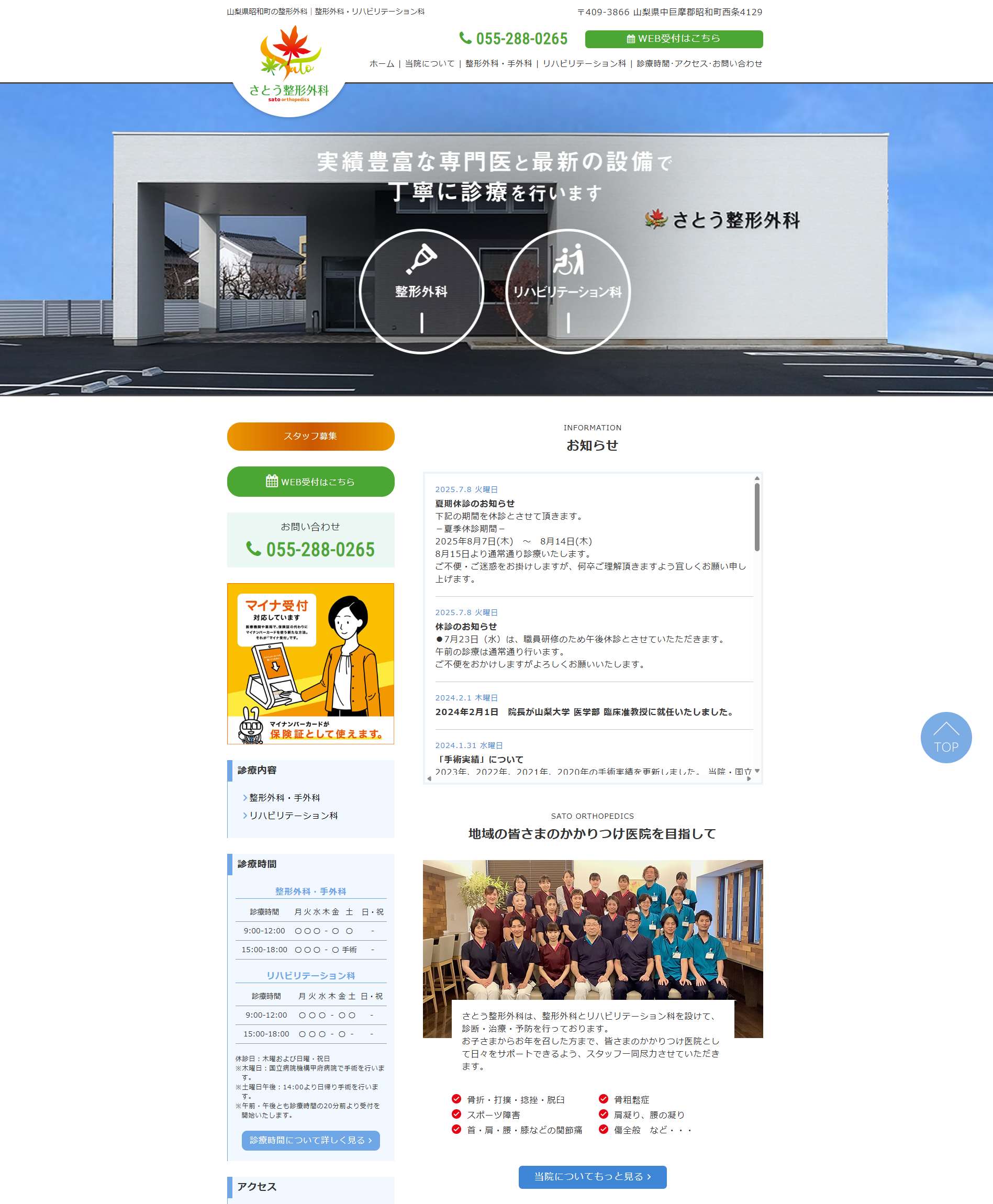 山梨県昭和町にある整形外科【さとう整形外科様】のホームページを制作させていただきました。