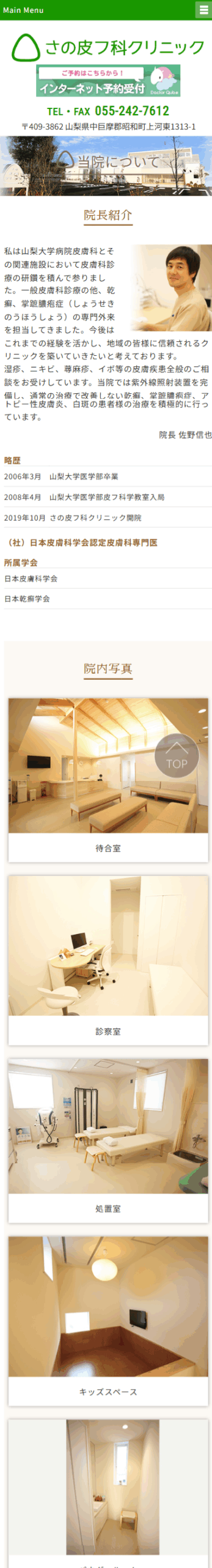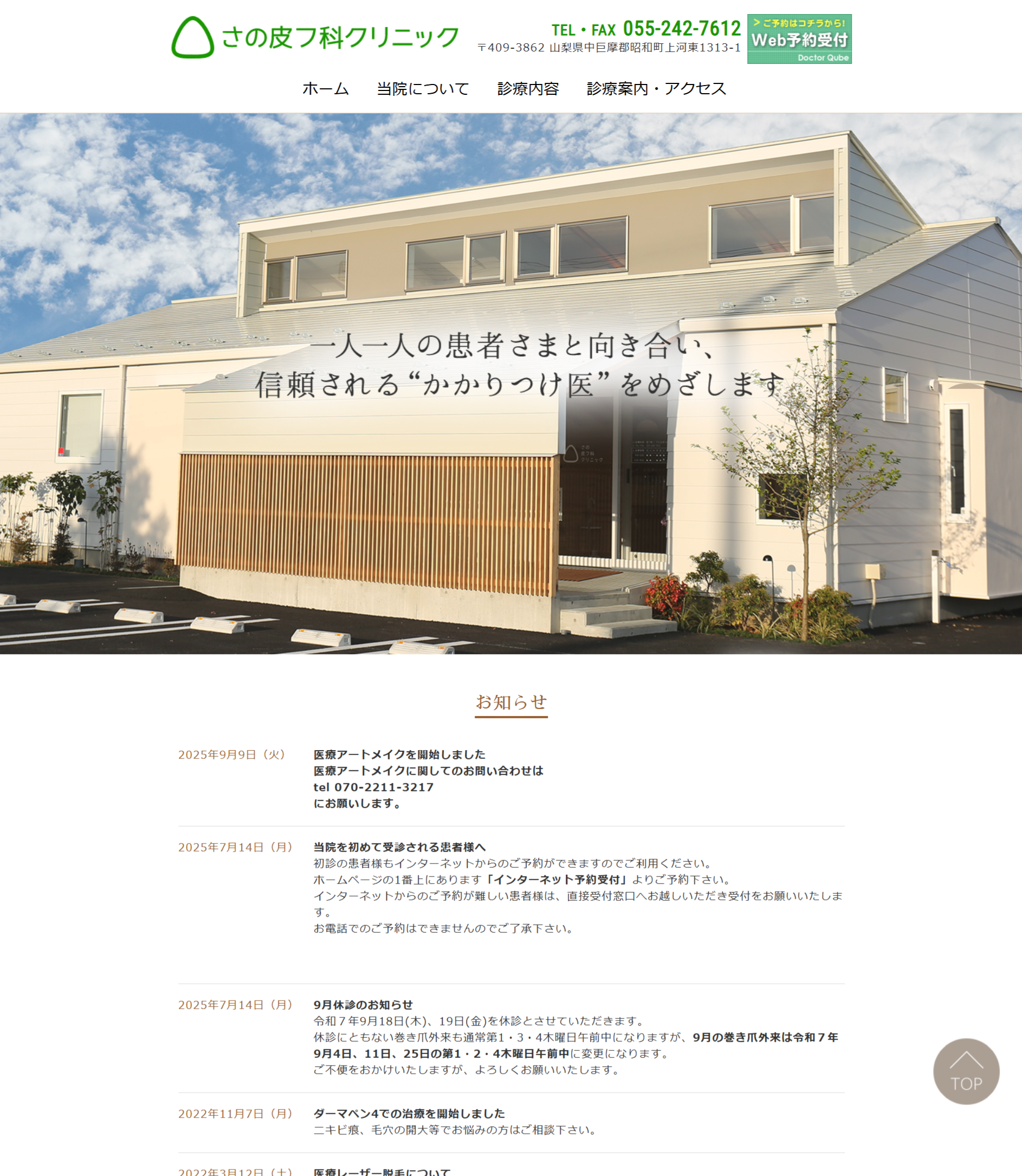 山梨県昭和町にある皮フ科【さの皮フ科クリニック様】のホームページを制作させていただきました。