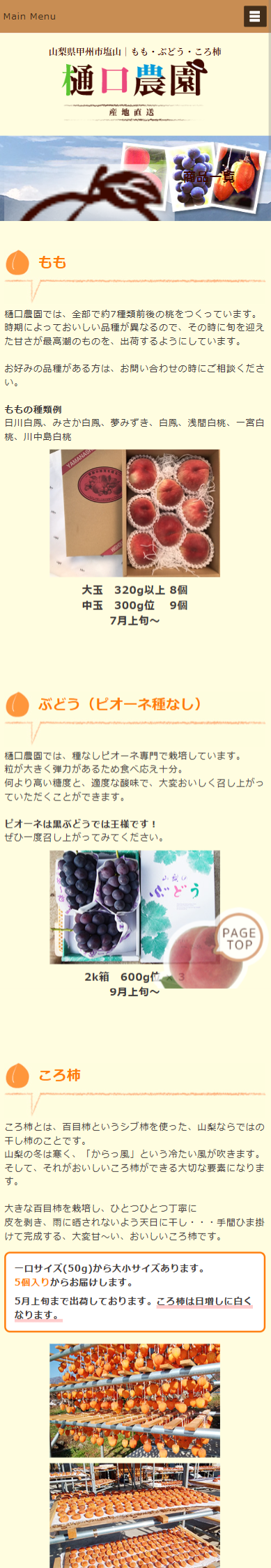 山梨県甲州市塩山の果樹園【樋口農園様】のホームページを制作させていただきました。