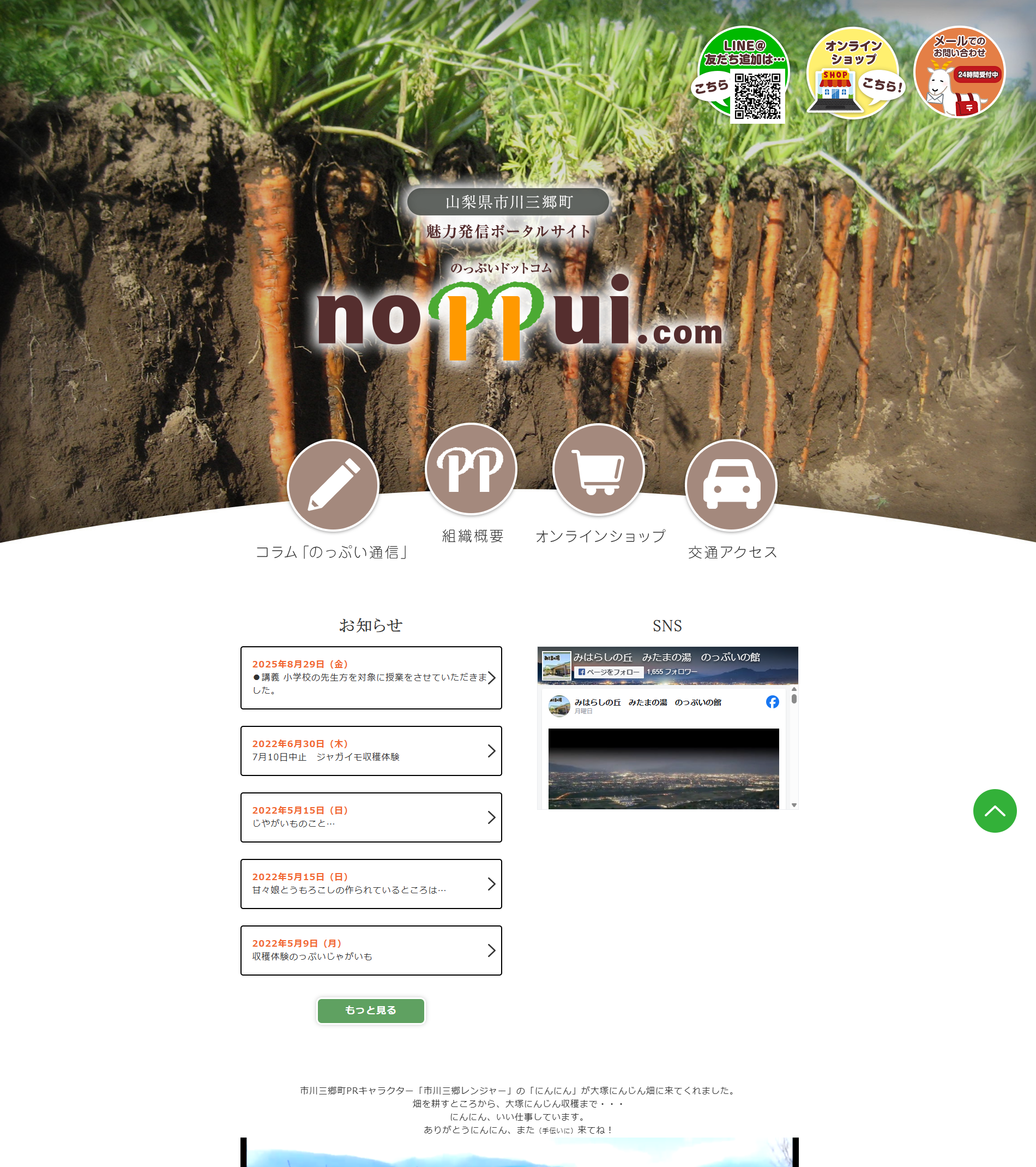 ノップイ様は、山梨県の市川三郷町に関する情報発信や作物の栽培、収穫した作物の加工、加工品販売をしております。