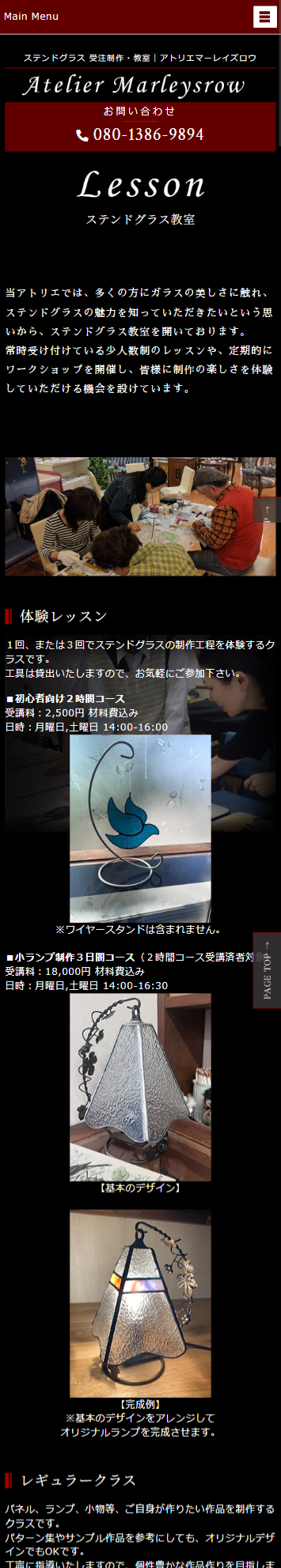 山梨県南アルプス市にあるステンドグラス工房【アトリエマーレイズロウ様】のホームページを制作させていただきました。