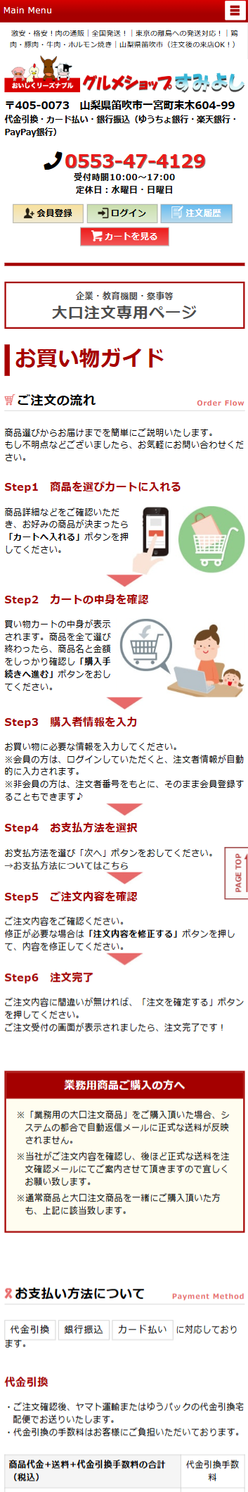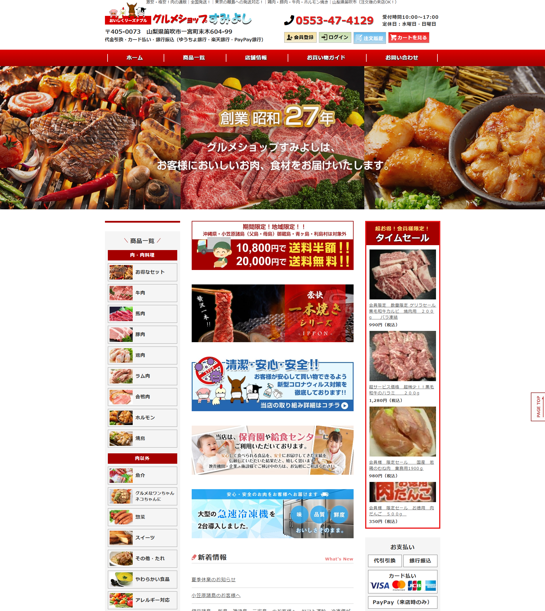 山梨県笛吹市一宮で精肉のインターネット販売を行う【グルメショップすみよし様】のホームページを制作させていただきました。