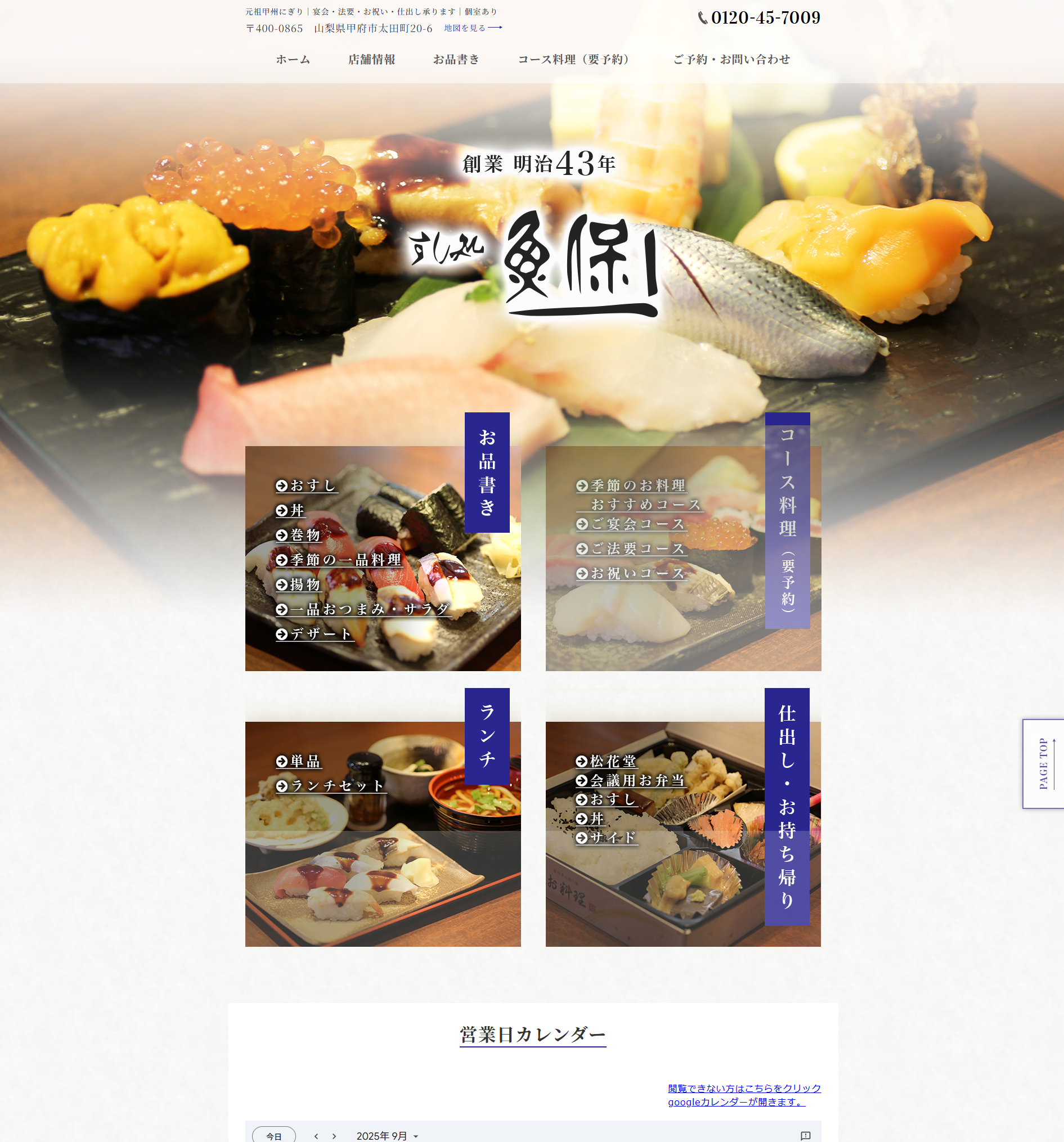 山梨県甲府市にある老舗寿司店【すし処魚保様】のホームページを制作させていただきました。
