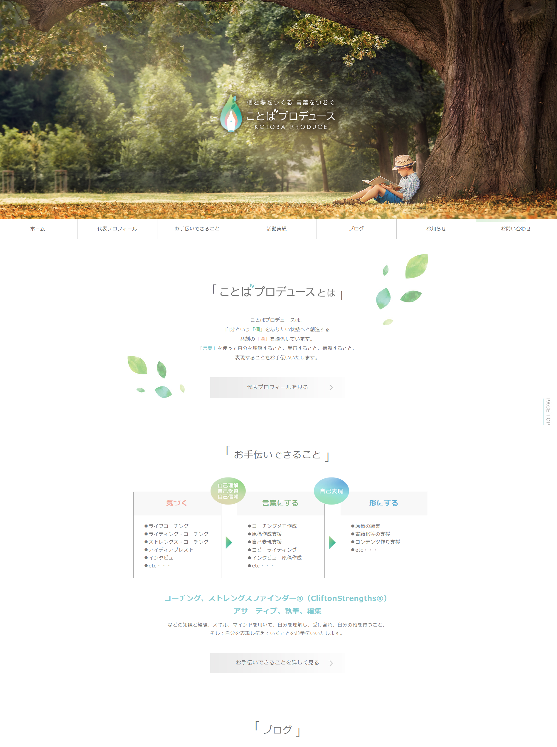 ことばプロデュース様では、自分を理解し、受け容れ、自分の軸を持つこと、そして自分を表現し伝えていくことをお手伝いいたします。