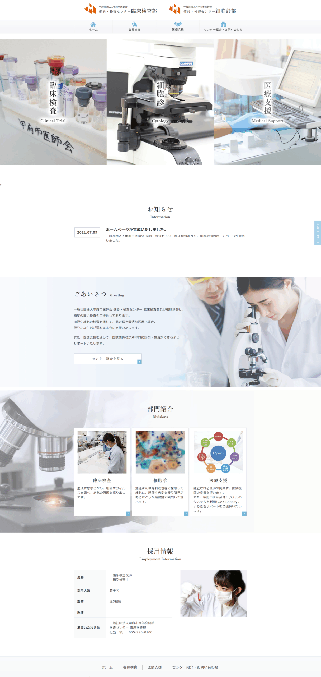 山梨県の一般社団法人甲府医師会【臨床検査センター様】のホームページを制作させていただきました。