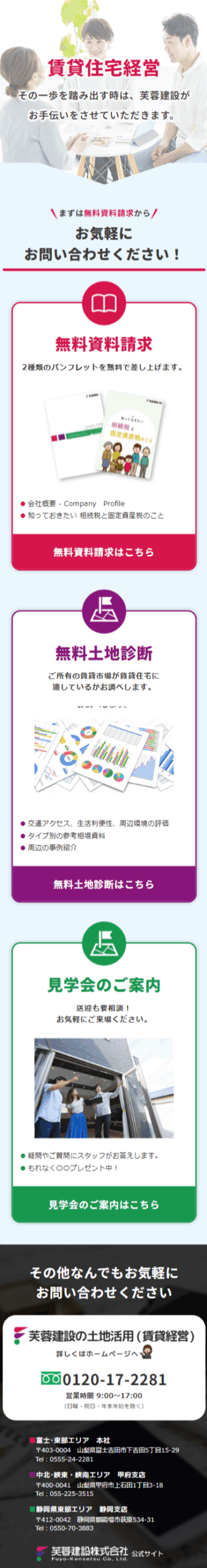 また、お問い合わせや資料請求などもどのページを見ていても簡単にできるように工夫いたしました。
