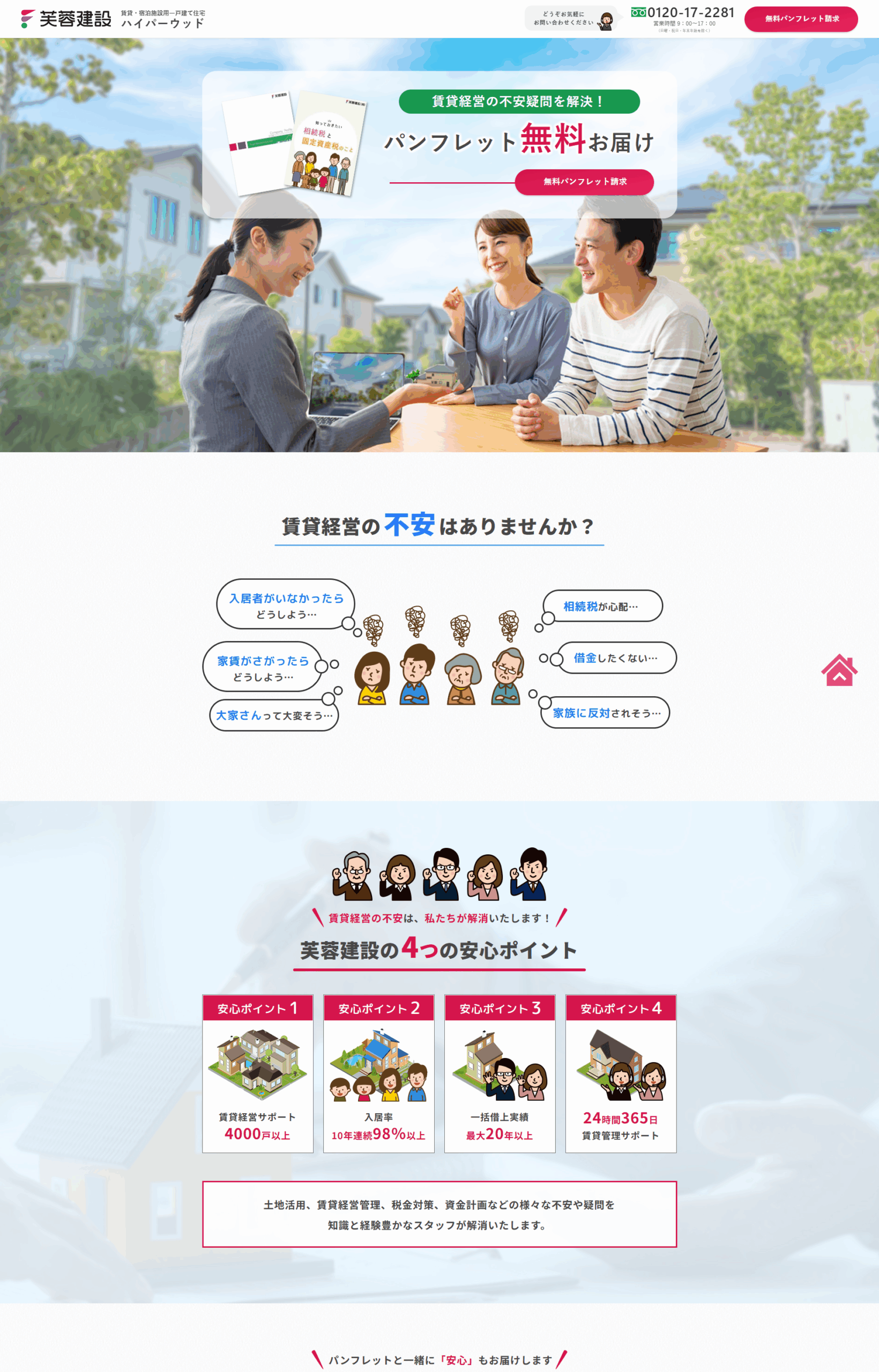 芙蓉建設の戸建賃貸ハイパーウッド様では土地活用、賃貸経営管理、税金対策、資金計画などの様々な不安や疑問を知識と経験豊かなスタッフが解消いたします。