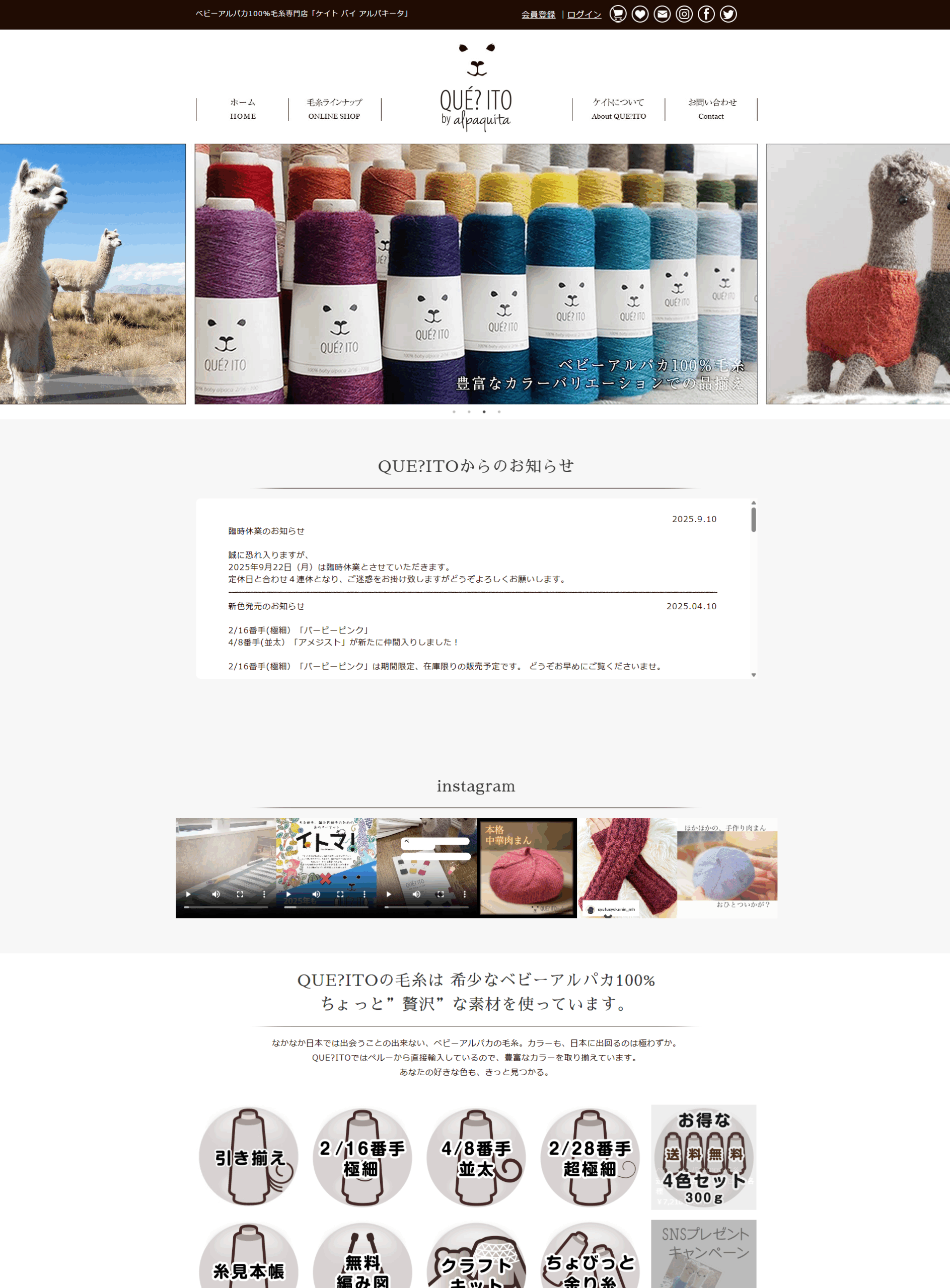 山梨県山梨市にある毛糸専門店【QUEITO(ケイト)様】のホームページを制作させていただきました。